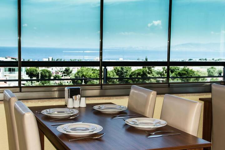La plage de mer des femmes, qui est la plus belle plage de Kusadasi, est située à 100 mètres. Il y a des migros et des épiceries à 50 mètres. Distance de baignade jusqu'à la plage. Il est à 5 minutes du centre ville. Éphèse et meryemana ou 15 voitures de droite. Nos chambres sont sous forme de studio et peuvent accueillir 4 ou 5 personnes confortablement.