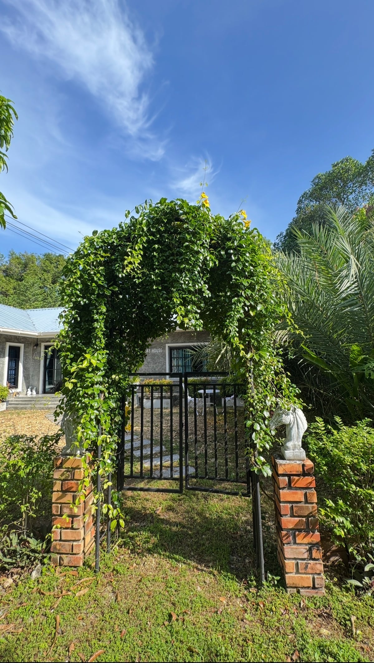 Maison de jardin avec belle décoration et des appareils complets tels que climatisation, réfrigérateur, douche chaude,TV et micro-ondes. Cette maison est adaptée pour la famille, le groupe d'amis, les étrangers qui aiment la nature et ont voulu échapper au style de vie occupé. Le quartier de la maison est entouré d'arbres fruitiers tropicaux comme le mangoustan, le ramboutan, le durian, etc. Vous pouvez également visiter le point de repère de l'histoire de Chantaburi, chute d'eau de Philu et la plage de laem-sing qui 10 min en voiture de la maison. N'hésitez pas à me contacter pour plus d'informations.