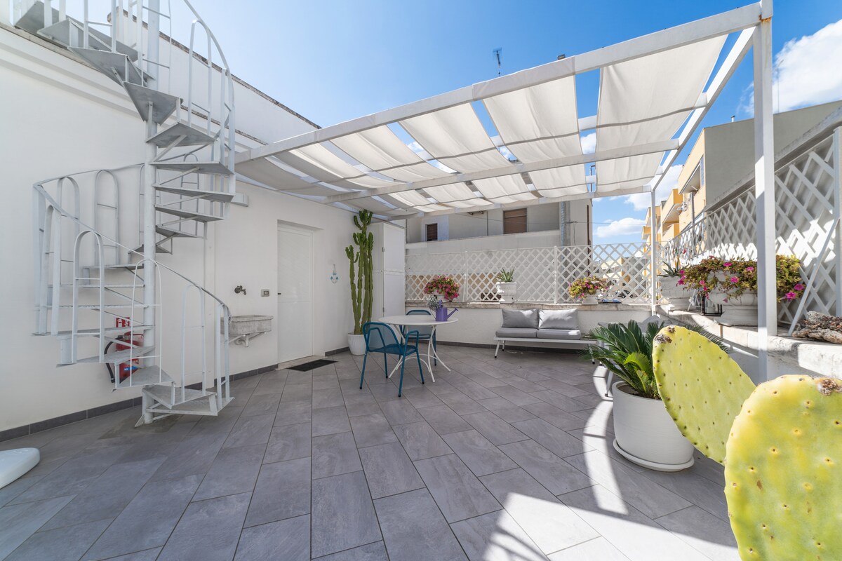 Moderno monolocale sito ad Otranto, a 100 metri dal mare, composto da soggiorno/cucina con letto matrimoniale e ampio bagno. Annessa alla proprietà una spaziosa terrazza di circa 50 mq, con ampio pergolato, ad uso esclusivo dell'appartamento per godere di un soggiorno in totale relax. L'abitazione si situa in posizione strategica per fruire delle splendide spiagge del Salento. A 5 minuti a piedi dal centro storico di Otranto. CIN-IT075057C200039534