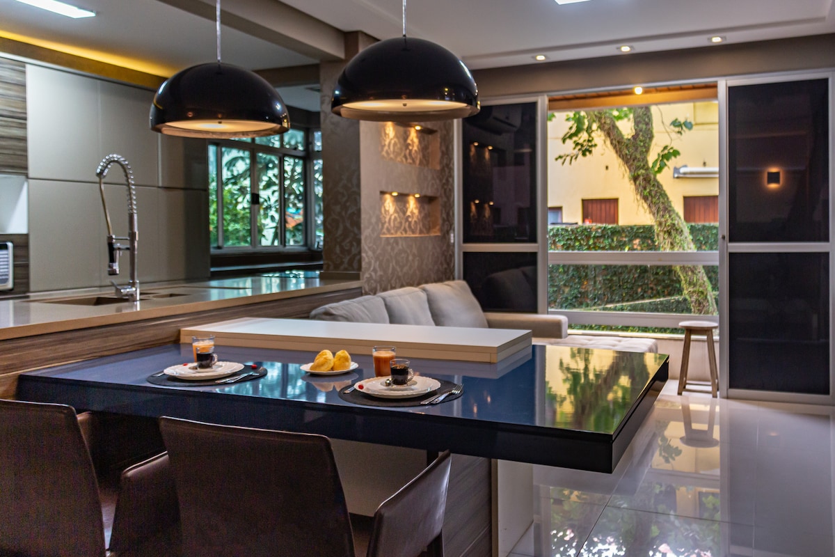 Vous cherchez un point de chute confortable au cœur de la ville ? Vous vous sentirez comme chez vous dans ce loft bien aménagé. Situé dans le centre-ville de Florianopolis, il est parfait pour quelqu'un qui cherche à explorer l'île ou à assister à un événement à proximité. Comprend : - Lit queen size - Cuisine gastronomique complète - Lave-linge et sèche-linge - Grande table pour les repas et le bureau à domicile - Télévision rotative à 360° pour que vous puissiez regarder de n'importe où dans le loft - Salle de bain propre et moderne - Wi-Fi - Climatisation complète.