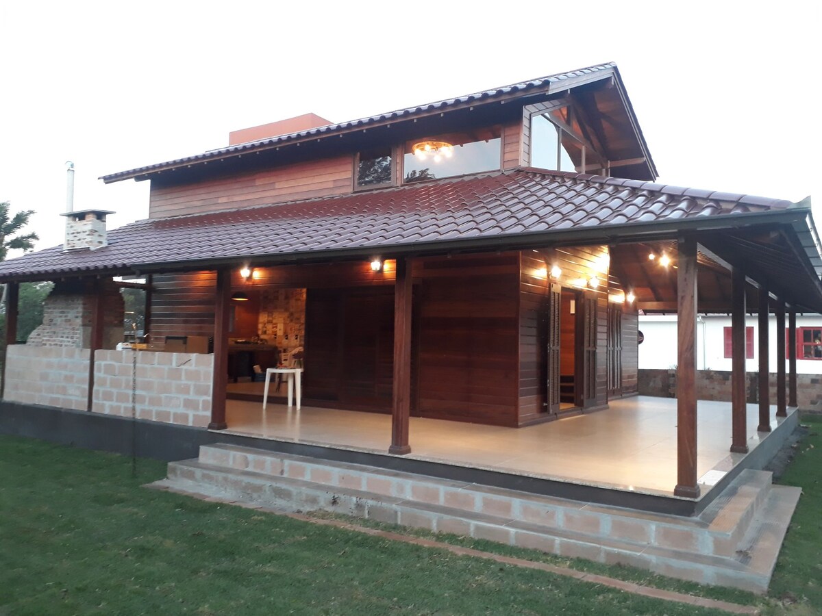 Situé dans un cadre à couper le souffle, nous sommes le refuge parfait pour ceux qui recherchent la tranquillité et le contact avec la nature. Avec une capacité d'accueil de 10 personnes, nous offrons un environnement spacieux et rustique, entouré de belles cascades. Notre espace est proche de Fluss Haus et à 126 km de Florianópolis. De plus, notre maison dispose d'un point de vue pour l'observation des étoiles, des sentiers, un étang avec des poissons, une cheminée, 3 salles de bains, une cuisine équipée, une buanderie et un espace fête.
