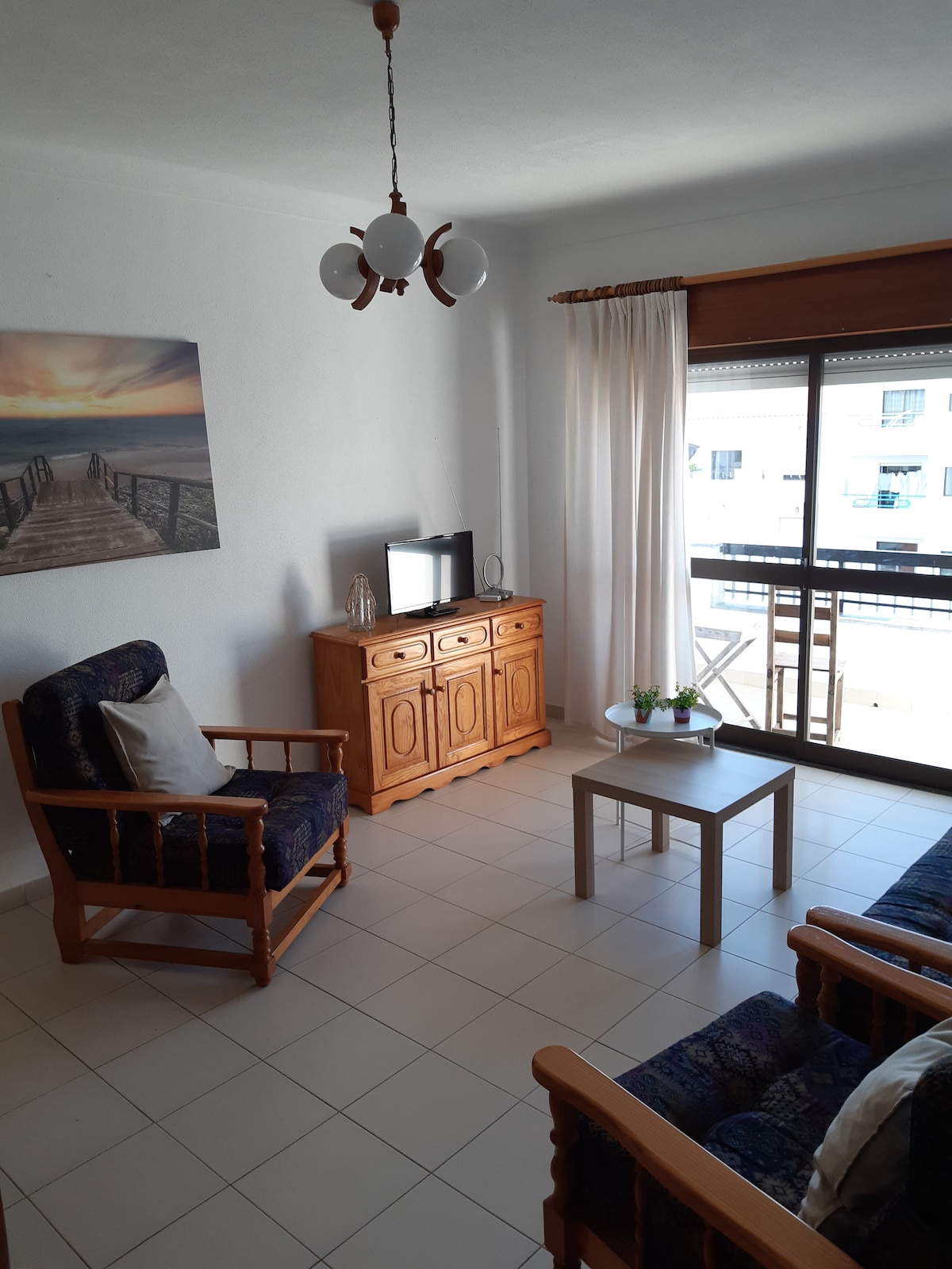 Nice quaint apartment located 350 m. walk from Praia da Luz and 1.2. km from Praia de Porto de Mós. The apartment has a fully equipped kitchen, one double bed plus one sofa bed which can comfortably sleep up to four people. There is a big private patio with BBQ, where you can hang out with family and friends, work, and tan. The apartment is equipped with A/C and WIFI. You can enjoy a beautiful sea view and watch the sunset with a glass of wine on the rooftop (common area) Fantastic location!