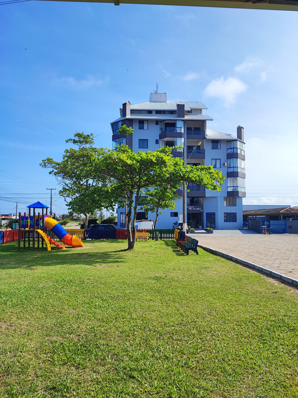 Très bien situé, à 200 mètres de la plage, avec intimité et confort. L'appartement est situé une rue au-dessus de l'avenue du quartier Mar Grosso, à proximité des restaurants, boulangeries, bars et supermarchés. Appartement situé au rez-de-chaussée, à l'intérieur du bâtiment, avec garage exclusif en face de l'appartement.