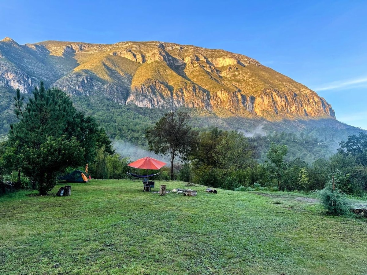 El Silencio de Pelo al Viento est un espace unique à louer dans la Sierra de Santiago, NL, idéal pour se déconnecter de la ville et se rapprocher de la nature dans un hébergement original avec une touche préhispanique, une énergie de paix et de merveilleuses vues panoramiques sur d'immenses montagnes. C'est une propriété de campagne avec un verger de pommiers où coule une rivière cristalline. El Silencio est loin des autres cabanes et voisins, c'est un espace d'un hectare 100 % exclusif pour vous et votre famille.