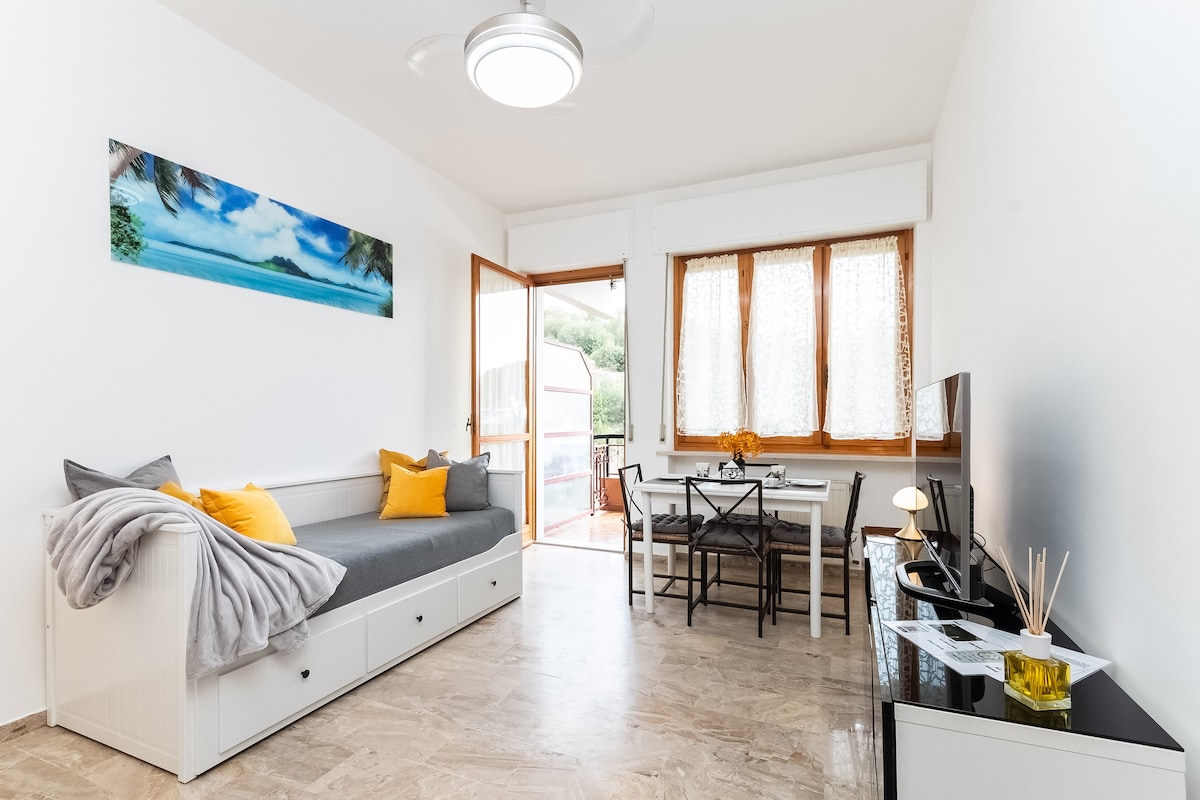 Dans le centre d'Alassio, à quelques pas du boyau et à 50 mètres de la mer, cet appartement appartenait aux grands-parents qui - de bons Turinois - aimaient les vacances d'hiver. Nous l'avons entièrement rénové avec tout le confort : wifi, climatisation, smart tv, même une machine à glace ! Le décor est un mélange d'éléments de design et de quelques touches de vintage, pour maintenir un lien avec la maison qui a été. Place de parking gratuite incluse - indispensable ici ! CITRA : 009001-LT-0738