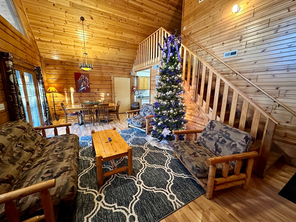 Notre cabane est située à côté du terrain de camping Jellystone Yogi Bear et du Three Bears Lodge. Beaucoup de places de stationnement pour les VTT et les remorques dans l'herbe. *Il y a une 2ème villa juste à côté de nous qui peut accueillir 10 personnes si vous avez un grand groupe et avez besoin de 2 villas* Nouveau mobilier dans le salon. Téléviseur 50 pouces avec Ruko 2 chambres privées avec lits Queen Size, au rez-de-chaussée. Téléviseurs dans les deux chambres/w Ruko 5 lits jumeaux et salle de bain à l'étage dans le loft. Téléviseur 40 pouces avec Ruko, lecteur DVD Cuisine entièrement approvisionnée. Lave-linge/sèche-linge. Barbecue.