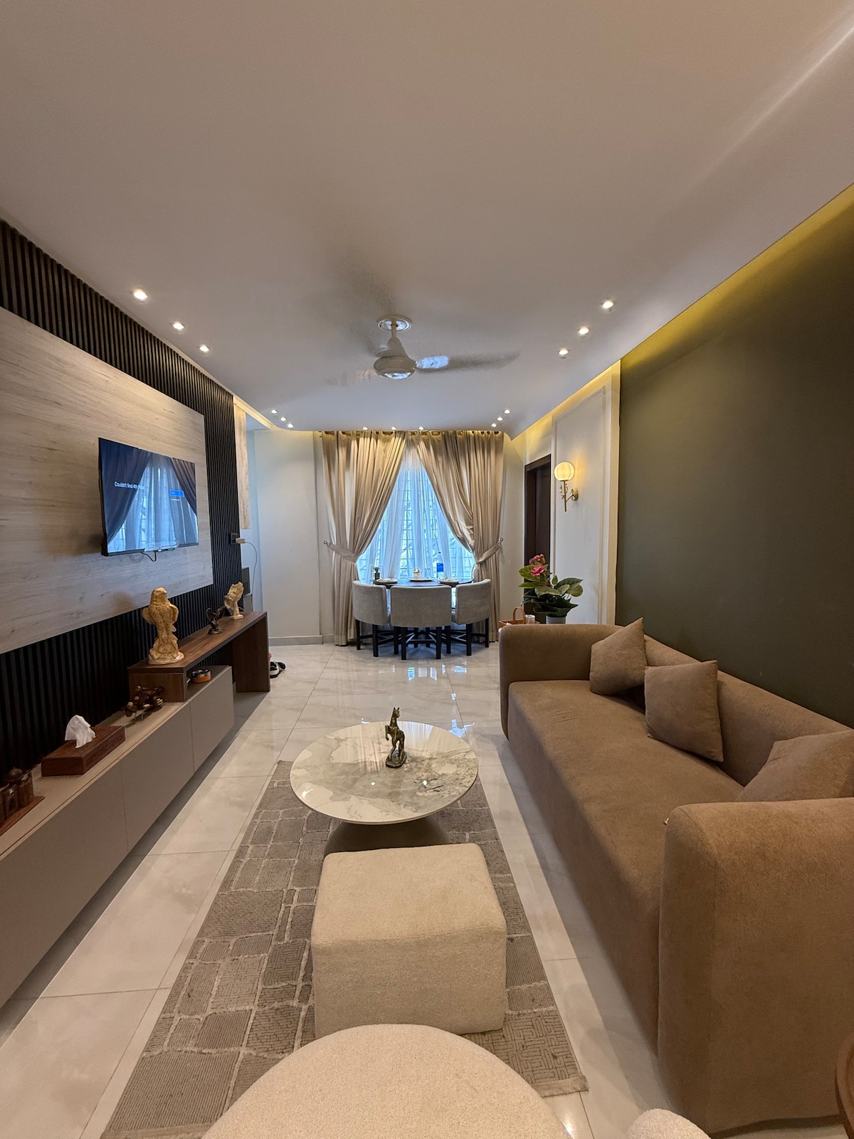Entrez dans une retraite moderne conçue pour le confort et l'ambiance. L'appartement dispose d'un superbe plafond étoilé qui crée une atmosphère calme et romantique. Profitez de soirées cinéma sur une télévision Android Haier de 65 pouces avec Wi-Fi haut débit pour un streaming fluide. La cuisine équipée offre une commodité quotidienne, tandis que le matelas moelleux et le canapé spacieux assurent une détente complète. Fini avec des intérieurs modernes et une esthétique artistique, cet espace est parfait pour des nuits confortables et un séjour élégant.