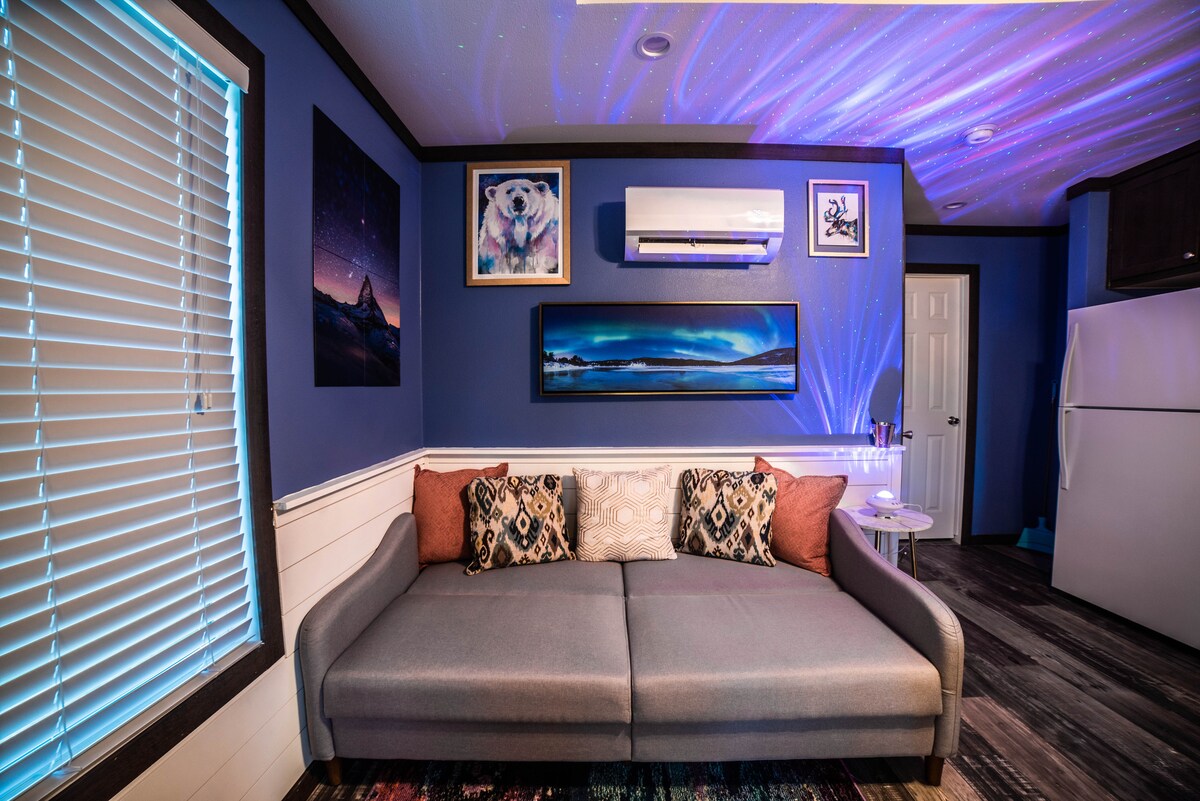 WELCOME to the glorious Chic tiny house, Prince Charming's Chateau which has 400+ sqft on 2 stories. 1 main bedroom plus a large loft. This home was PROFESSIONALLY decorated to fit the theme of our Fairytale Village & sits near Snow White & Happy's Homes. From the moment you walk in you will be mesmerized! Come enjoy the outdoors and experience the world of GLAMPING from a prince perspective. Adults and children all ages will feel the adventure awaiting as soon as you walk in!
