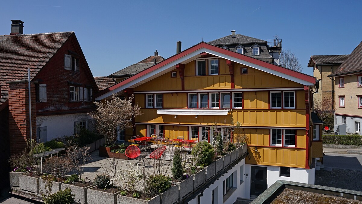 Die «Alte Metzg» ist die etwas andere Unterkunft im Dorf Appenzell. In dem über 500-jährigen Haus laden die Boutique-Pension und das Hostel zu einem erholsamen und unbeschwerten Aufenthalt ein. Das gesamte Gebäude wurde 2021 neu renoviert. Pension und Hostel sind zwei unabhängige Bereiche, Zimmer können einzeln gebucht werden. In der Alten Metzg bieten wir Zimmer für jeden Geschmack , mit Privat- oder Etagenbad, Gemeinschaftsräumen (Küche/Aufenthalt) und Sauna zur Nutzung. Zimmer 2 mit Etagenbad