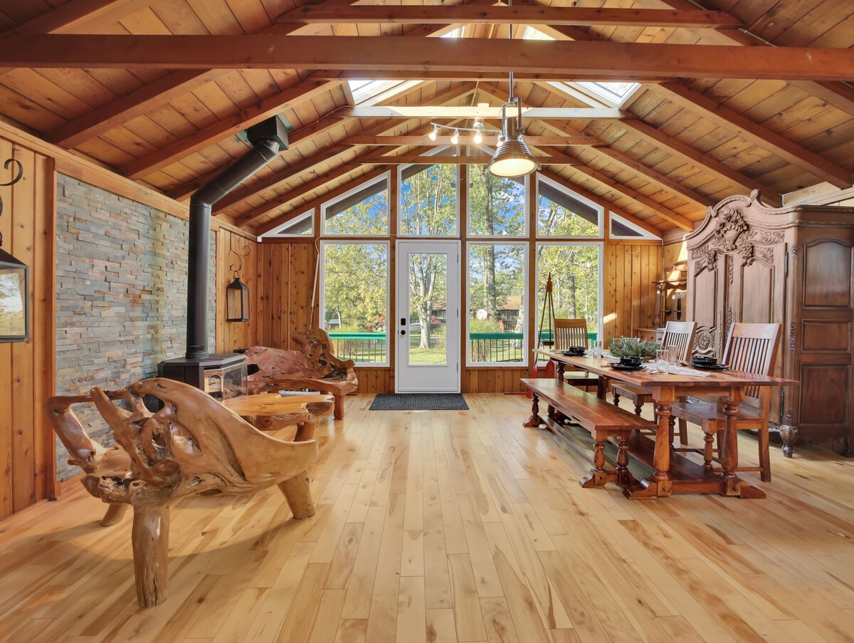 Chalet/chalet de campagne moderne. 1 acre de pelouse et d'une zone boisée. Terrasse extérieure saisonnière/salle à manger, foyer. Niché au sein d'une communauté Amish pittoresque de l'Ancien Ordre. Allée privée isolée. Parc d'État d'Allegany, boutiques amish, National Comedy Center de Jamestown, musée Lucy Desi, casino Seneca/Allegany, sentiers de randonnée sur les terres de l'État, Ellicottville à 30 min. Ruisseaux publics, vignobles du lac Érié, Chautauqua Institution, lac Chautauqua. Pas de lumières de la ville pour obscurcir le ciel nocturne. Décoré selon la saison