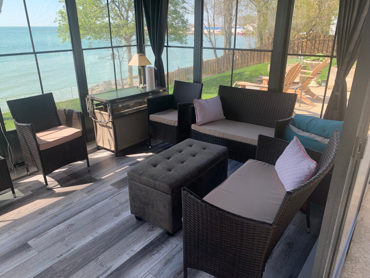 Sit by the water and enjoy this unique and tranquil getaway. Modern, new and stylish space with fully equipped modern kitchen. Stunning panoramic view of Lake Erie from inside and out. Exclusive use of an outdoor hot tub, open all year round. Beautiful garden attracting numerous butterflies and birds with access to the water. Less than 1Km to downtown Kingsville- enjoy excellent restaurants and shopping. Walking distance to Pelee winery and the Greenway trail for walking/jogging/biking.
