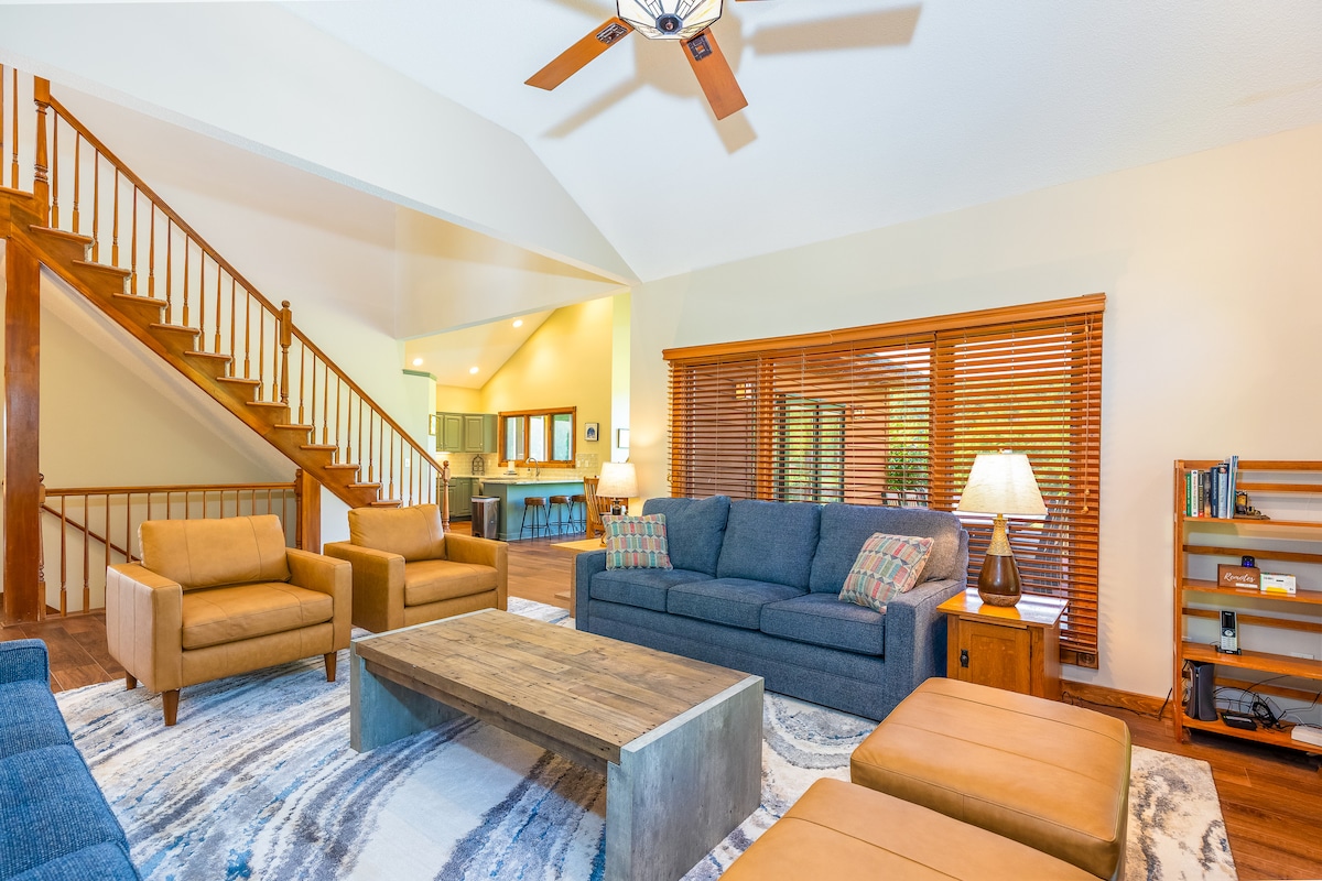 The Gathering Place est une maison moderne et spacieuse de 6 chambres/6 salles de bain pouvant accueillir jusqu'à 14 personnes. Nous acceptons les familles et les animaux de compagnie. - Jacuzzi 7 places - Table de billard - Jeux d'arcade - Wi-Fi ultra-rapide - 8 téléviseurs connectés - Cuisine entièrement approvisionnée + bar à café - Jeux de jardin - Buanderie. - Bar en bas - Cheminées à l'étage et en bas - À moins de 5 minutes des installations du club des propriétaires ; - Juste en face du terrain de golf Est - Sentier pédestre près de la propriété - Espace de travail dédié