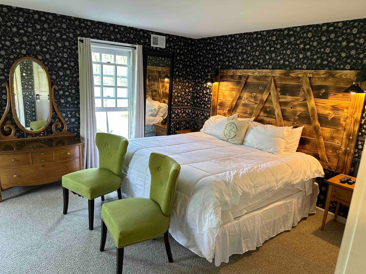 6 Bam-Boo! est votre escapade confortable au cœur du Vermont, à quelques minutes de Manchester Center. Restez au cœur de l'action dans cette chambre fantaisiste unique avec un lit King Size, un fauteuil confortable, une table avec des chaises, une télévision à écran plat avec des services de streaming, un mini-réfrigérateur + congélateur et une cafetière. Assurez-vous de prendre une collation ou un café/thé au Snack Lounge, ouvert 24h/24. Bam-Boo 6 est l'endroit idéal pour se détendre et se ressourcer après avoir exploré l'État de Green Mountain. Venez séjourner chez nous !