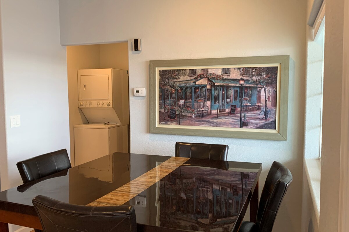 Emplacement super mignon au nord ! Cette suite de 430 pieds carrés peut accueillir jusqu'à quatre personnes. L'espace se compose d'une cuisine/coin salon et d'une chambre king avec bain. Le séjour peut accueillir jusqu'à 2 personnes sur le canapé-lit gigogne. Allez et venez comme bon vous semble grâce à l'entrée privée à digicode. Cour privée fortifiée avec piscine étincelante et patio ombragé. Profitez d'un séjour relaxant pour un week-end ou plus.