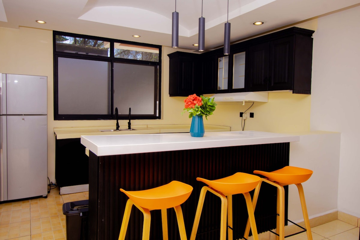 Découvrez votre escapade de rêve dans un nouveau quartier tranquille de 2 chambres, situé dans le quartier résidentiel privilégié de Kigali (parcours de golf de Nyarutarama), à 15 minutes de l'aéroport, dans un quartier pratique, à 6 minutes en voiture du Kigali Convention Center, à 5 minutes à pied du Brioche Café (Woodlands, simba), des supermarchés CaliFitness, de la salle de sport CaliFitness, à 3 minutes en voiture de MTN Center, à 6 minutes de Kigali Heights, de la télévision par câble Netflix, du DSTV rapide, d'Internet rapide. Elle est située sur une route Tarmac