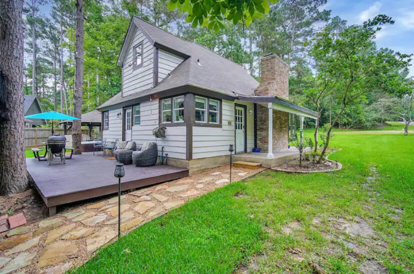 Notre petite escapade est située au bord d'un canal qui mène au lac Conroe. La marina du lac dispose de jet-skis et de bateaux à louer. Notre maison est proposée avec un canoë et un kayak. Elle propose également de la pêche dans le canal. Endroit très calme, serein avec beaucoup de beaux oiseaux Nous aimons particulièrement nous asseoir sur le porche arrière et regarder les aigrettes passer ou les canards nager dans le canal. Un endroit idéal pour se reposer et se recharger, ou ramper et faire du jet ski sur le lac. Ou les deux ! Il s'agit d'un logement non-fumeur.