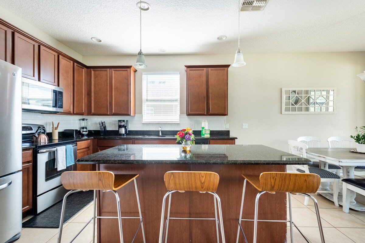 Trouvez votre bonheur dans notre havre de Kissimmee, où la villa moderne dispose d'une piscine d'eau salée, d'espaces de vie aérés et de chambres à thème enchanteresses qui promettent des rêves magiques. La suite parentale offre un confort optimal avec un accès direct à la piscine et une salle de bain attenante luxueuse, garantissant un sanctuaire privé pour la détente. La villa est complétée par l'accès à une salle de sport bien équipée et à une piscine commune. Parfaitement située, notre maison est une porte d'entrée pour explorer le meilleur d'Orlando, des parcs à thème aux rivages.