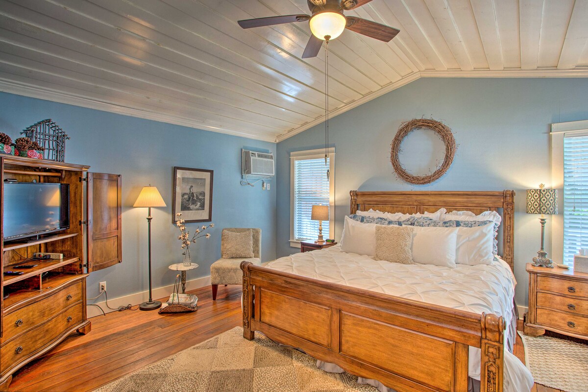 Votre voyage dans les années 1800 dans le quartier historique de Jefferson commence dès que vous franchissez la porte du « Chalet Alsace » - Un chalet historique équipé des éléments de design les plus uniques et les plus charmants de l'époque de la campagne française dans l'histoire. Avec un lit King Size, des planchers centenaires récupérés, une cheminée et une baignoire à jets, vous vous sentirez confortable et comme chez vous. Lorsque vous serez prêt à explorer, vous serez à distance de marche/vélo du cœur du centre-ville où vous pourrez découvrir un rythme de vie plus lent.