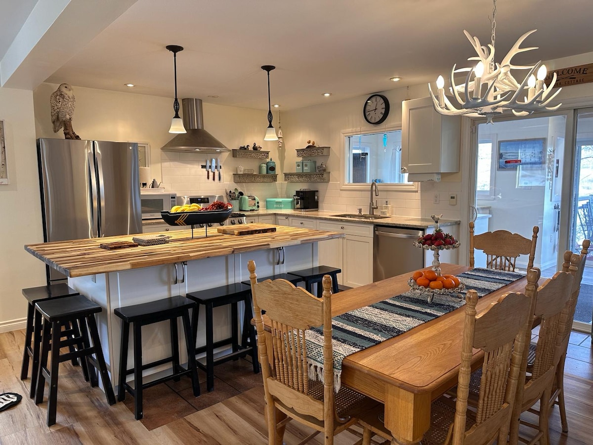 Amenez la famille et les amis au lac pour le plaisir et l'aventure ! Sentiers pédestres et plages, kayak, pêche et baignade ! Grande terrasse arrière face à la forêt boréale et beaucoup de visiteurs de la faune ! Cuisinez un festin de barbecue et dites bonjour au sympathique cerf qui vient pour une visite ! Détendez-vous pour la nuit et détendez-vous jusqu'à un feu de camp chaleureux au son des huards. Les réservations de 2 nuits ou plus incluent un panier complet de bois de chauffage (valeur de 20 $), 2 paddleboards et 6 kayaks (valeur de 170 $) à utiliser sur le lac Rabbit