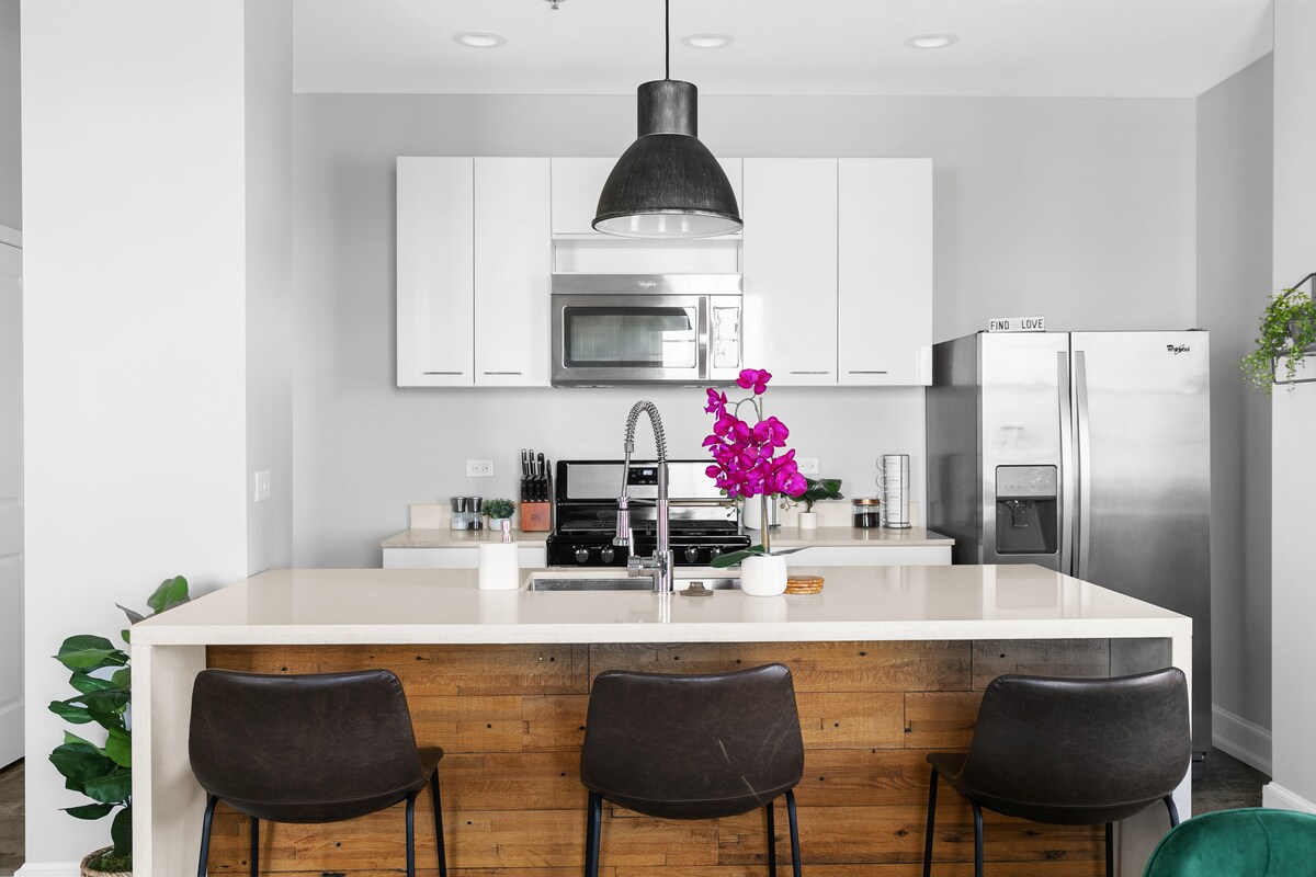 Profitez du confort de cet élégant appartement du centre-ville de Birmingham, idéalement situé à 2 minutes à pied de l'hôpital UAB, de Publix, de nombreux restaurants, cafés et bars du centre-ville, à 7 minutes à pied de Regions Field et plus encore, l'endroit idéal pour votre séjour de travail à distance de longue durée, vos vacances ou votre long week-end. * Buanderie dans le logement * Wifi rapide * Télévision connectée de 50 pouces avec applications * Stores occultants * Cuisine entièrement équipée * Nouvelle salle de sport ! * Arrivée autonome