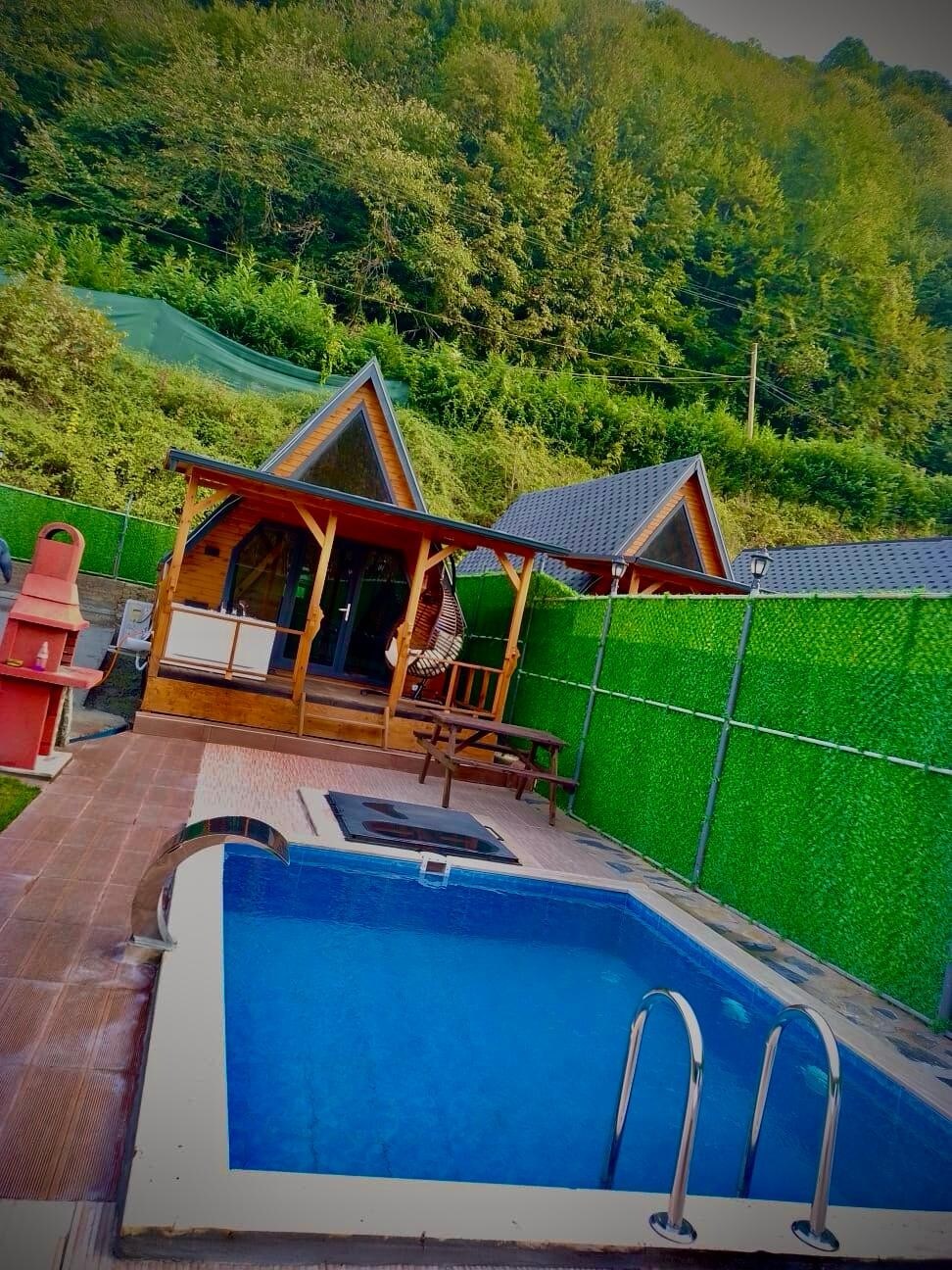 Détendez-vous dans cette escapade unique Loca Sapanca Bungalov 6, avec un intérieur à thème tropical et un grand jardin à l'avant et à l'arrière. Chez LOCA SAPANCA BUNGALOW, chaque maison a ; une piscine extérieure privée, jacuzzi intérieur, cheminée en pierre et lit loft au sol. Unité de télévision Mini bar climatiseur Nos bungalows disposent de terrasses avant et arrière. Sur la terrasse avant, vous trouverez un joli jardin avec un coin barbecue et sur la terrasse arrière, vous pourrez profiter de votre intimité avec une piscine privée et une terrasse de bain de soleil.