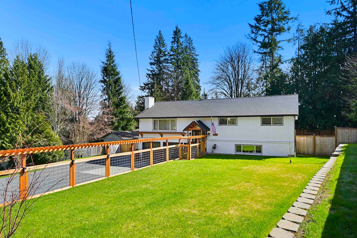 Bienvenue à Graceland, un espace pour tous. Maison entière adaptée aux familles (y compris vos chiens, les chiens doivent être approuvés) avec grand jardin à distance de marche du centre-ville de Lake Stevens. Proche des brasseries locales et des commerces. Parfait pour une famille ou des événements d'équipe d'affaires. Immense salle à manger avec cuisine de luxe entièrement fonctionnelle. La grande terrasse couverte est parfaite pour dîner ou boire un verre. Jacuzzi Viking pour 6 personnes. Beaucoup de places de stationnement ! Nous avons également la climatisation. Parc à chien personnalisé pour les bébés à fourrure.