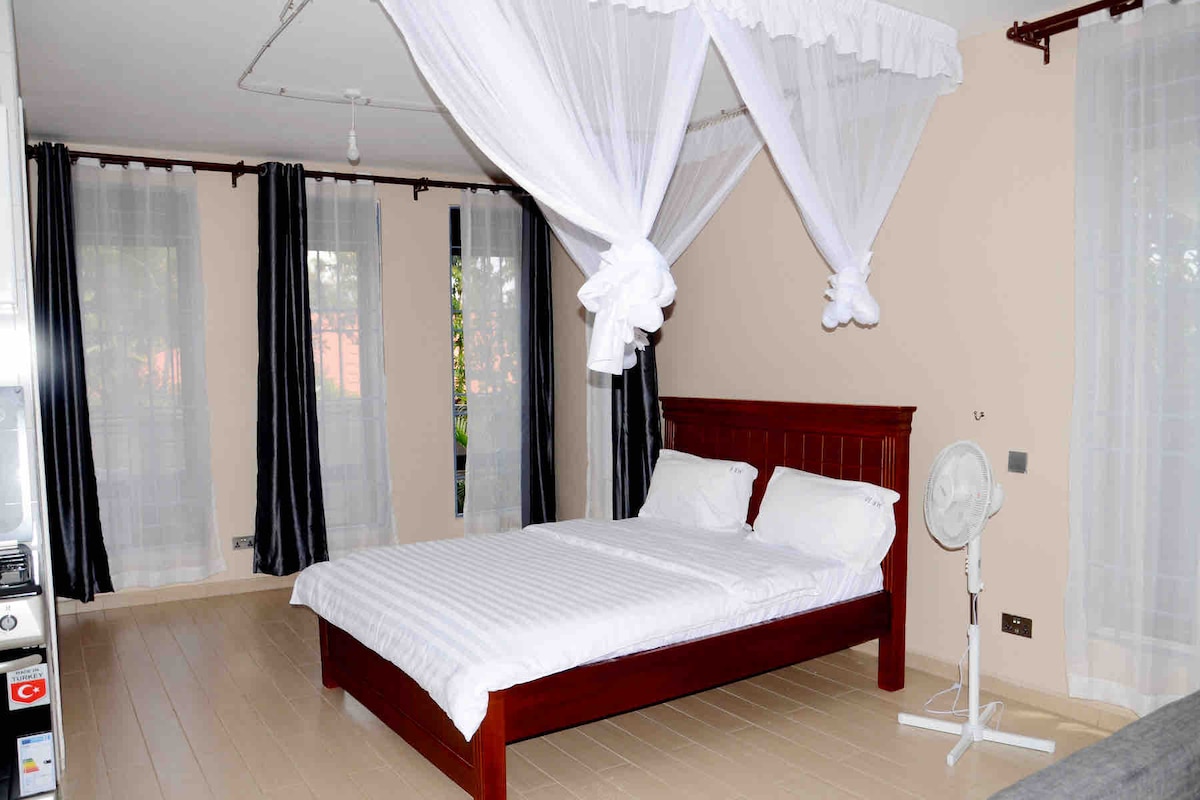 Appartement au rez-de-chaussée avec alimentation de secours, jardin à l'arrière, Kyanja. Situé à Kampala, en Ouganda, Desroches Luxury Villas propose des appartements spacieux avec patio. Cette propriété offre un accès à un balcon, un parking privé gratuit et une connexion Wi-Fi gratuite. Le logement est non-fumeur. Il propose des appartements spacieux et élégamment conçus de deux chambres entièrement équipés avec des meubles modernes, une télévision intelligente à écran plat de 55", une connexion Wi-Fi haut débit, des salles de bain privatives, des balcons spacieux, un salon et une cuisine entièrement équipée.