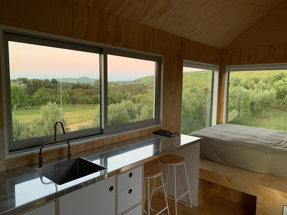 Notre cabine compacte autonome, à double vitrage et entièrement isolée est bien équipée. Il se trouve seul sur notre propriété de style de vie, privé de notre maison avec une vue fabuleuse sur les Remutakas. Il y a un espace barbecue extérieur couvert. Détendez-vous dans le ~bain~ sous les étoiles. Nous avons un petit chien (Lucy), un doux Huntaway qui aboie (Ruby), des ânes (Phoebe, Anna et Lily) et August (chat). Tous très sympathiques. Un petit animal de compagnie est autorisé. Veuillez nous en informer lors de la réservation.