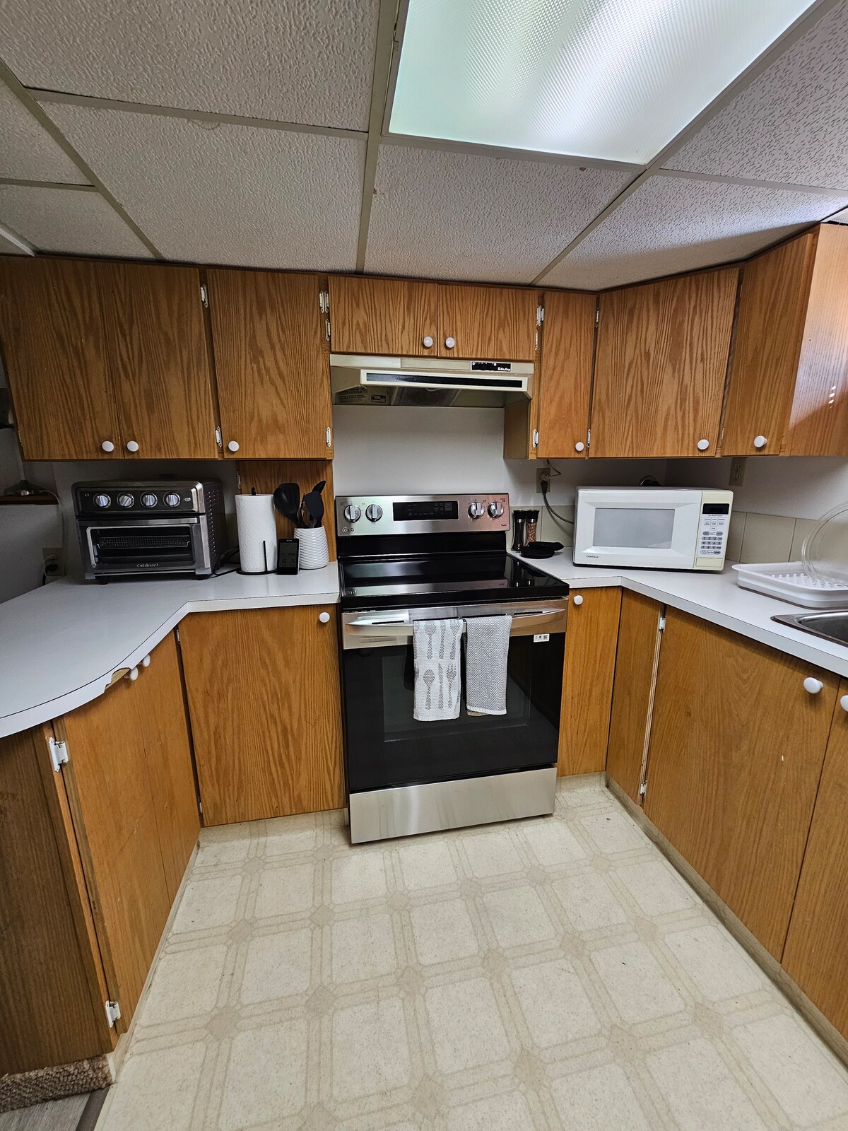 Cette suite studio lumineuse, privée et de plain-pied offre un design frais, rustique et ouvert et se trouve dans un quartier paisible et familial à seulement 5 minutes en voiture du centre-ville de Terrace. Accès à pied au Thornhill Pub. Les caractéristiques de l'espace comprennent : entrée privée ; lit queen confortable ; rideaux occultants, futon double, bar à café gratuit, télévision Roku 42", table pour dîner ou travailler ; kitchenette approvisionnée ; salle de bain 3 pièces ; espace de rangement ; buanderie partagée ; garage sécurisé si nécessaire.
