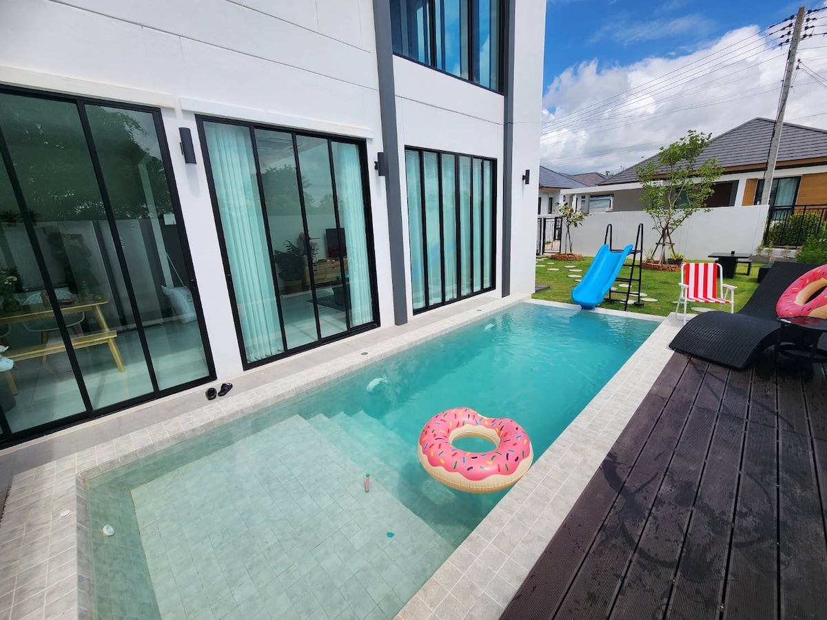 Charmante villa familiale avec piscine privée dans la pittoresque Chiang Mai Évadez-vous dans notre sereine villa de 4 chambres et 4 salles de bain dans la banlieue paisible de Chiang Mai, parfaite pour les familles. Profitez de trois chambres avec vue imprenable sur la montagne, ainsi que d'une chambre au rez-de-chaussée avec une zone de jeux pour enfants. La villa dispose d'une piscine privée de 3x7 mètres avec une profondeur de 1,5 mètre et un toboggan, idéale pour la détente et le plaisir. Notre villa est à seulement 30 minutes de la vieille ville et des cafés et boutiques branchés de Nimman.
