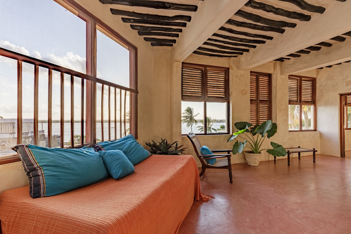 A charming white-washed seafront cottage at the edge of Shela village, nestled in a tropical garden on a small estate. Enjoy spectacular views of the channel and mangroves from the rooftop terrace. There is a 20m pool (shared with the main house) and the beach right at your doorstep. Your stay includes: - daily housekeeping - private chef - airport pickup - daily breakfast - purified water - internet - organic toiletries - 2 kayaks