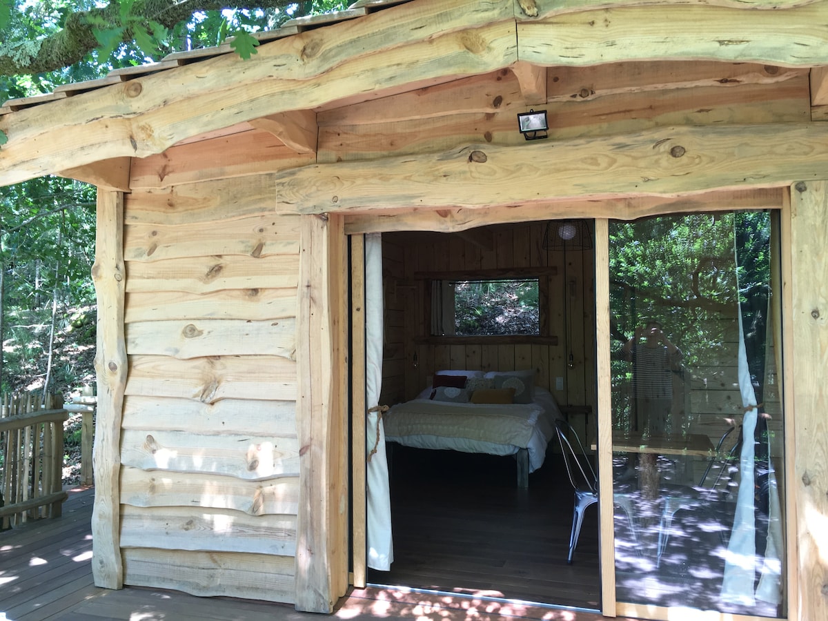 Unique à 10mn des plages de Capbreton, cabane perchée sur pilotis, réalisée par le propriétaire. Construite en respectant la nature, vous serez séduit par sa terrasse de 25m2 dans laquelle un chêne semble sortir de nul part et vous offre son feuillage en guise de toit. La Cabane est construite sur la propriété familiale située à la sortie de Capbreton, où nous accueillons chaque été notre famille dans une ambiance chaleureuse et conviviale. Vous ne serez pas isolé mais totalement indépendant.