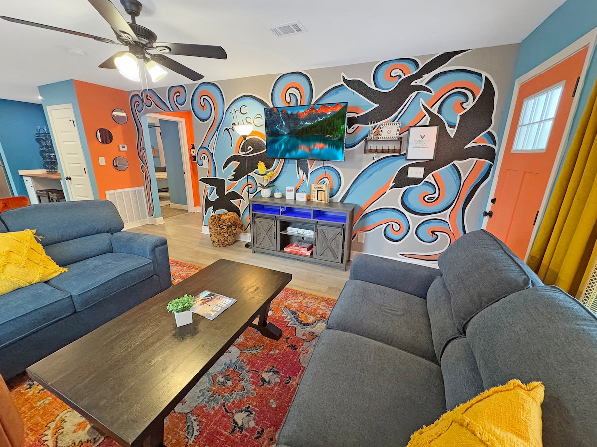 Profitez d'une expérience élégante dans ce logement d'une chambre et d'une salle de bain situé au centre de Gulfport. L'espace peut accueillir 4 personnes avec un lit King Size et un matelas Queen Size. Le salon est équipé d'une télévision connectée. Connectez-vous et diffusez avec des applications comme Netflix et Hulu. La cuisine est entièrement équipée et comprend tout le nécessaire pour cuisiner. Emplacement génial à deux pas de l'aquarium MS, de Jones Park et du centre-ville de Gulfport.