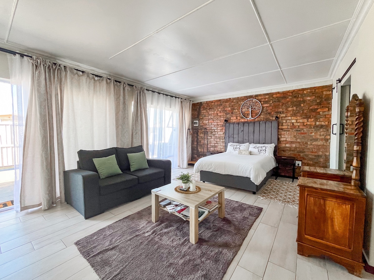 Bienvenue dans notre spacieux studio King climatisé niché dans le pittoresque domaine de Langebaan. Profitez du mélange parfait de confort et de luxe dans cette retraite magnifiquement conçue. Avec une lumière naturelle abondante, une kitchenette entièrement équipée, une terrasse offrant une vue imprenable sur le terrain de golf et la nature environnante, la détente est garantie. Profitez des équipements du domaine ou aventurez-vous à la découverte des plages de Langebaan ou du parc national de la côte ouest. Votre escapade idéale sur la côte ouest vous attend !
