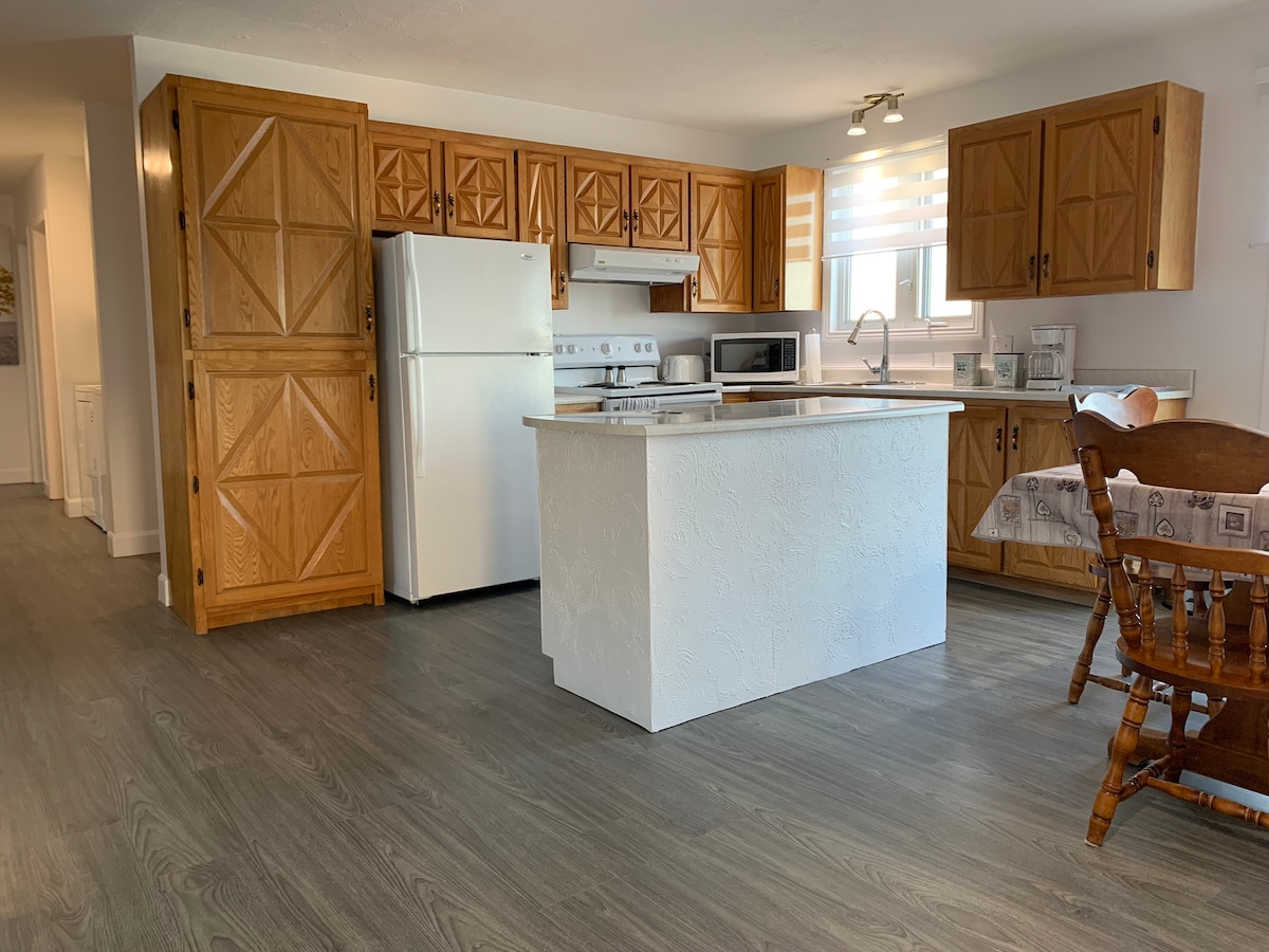 Vue imprenable sur la baie, à deux pas du centre de Gaspé Posez vos valises dans ce spacieux appartement de 2 chambres en plein cœur de Gaspé. Idéal pour les familles ou les groupes, il peut accueillir jusqu’à 6 personnes grâce à ses lits king et queen, et son canapé convertible. Profitez de la tranquillité d’un balcon avec vue sur la baie, tout en ayant les restos, boutiques et services à distance de marche. Stationnement inclus, emplacement imbattable. Lit bébé (parc) sur demande.