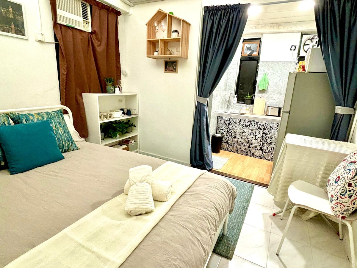 Bonjour, salutations de notre part !Notre famille d'accueil souhaite vous offrir une expérience unique et authentique à Hong Kong, qui ne vous donnera pas l'impression de séjourner dans un hôtel. Nous prenons grand soin de cette maison et travaillons dur pour la garder impeccable, confortable et propre, et l'espace est adéquat, et il ne semble pas encombré pour cinq personnes.Vous adorerez notre terrasse privée, où vous pourrez vous détendre tout en regardant le Hennessy Trail animé et ressentir le pouls de la ville. Cependant, pour vous donner une compréhension plus complète, notre logement est situé dans un vieil appartement très malodorant construit dans les années 1960.Nous prenons soin de l'intérieur de l'appartement, mais les couloirs et les cages d'escalier communs de l'immeuble ont été marqués par les années et peuvent également présenter une certaine usure due au climat humide de Hong Kong.De la porte principale au hall de l'ascenseur, vous devez également monter environ 12 marches d'escalier. Nous avons déjà pris en compte ces facteurs dans le prix de la chambre, nous espérons pouvoir vous offrir une excellente expérience locale ici pour le prix, merci beaucoup de votre compréhension Appartement entier, le quartier est de 549 pieds plus une terrasse surdimensionnée de 300 pieds, le centre-ville de l'or en terre peut être apprécié exclusivement pour 5 personnes, il y a un lit double de 1,4m dans une chambre, l'autre chambre est un lit de 1 m de haut et bas, le salon dispose d'un canapé-lit double, la chambre est confortable, la chambre est confortable, nous fournissons la literie et les serviettes, et il y a une machine à café avec thé chinois café, avec cintres, tables de lit, bureau, transport pratique à Hong Kong Crossover Bay à 3 minutes, le bus de l'aéroport est directement à la porte de la porte, le quartier est proche du quartier pour les magasins d'alimentation, absolument excellent rapport qualité-prix