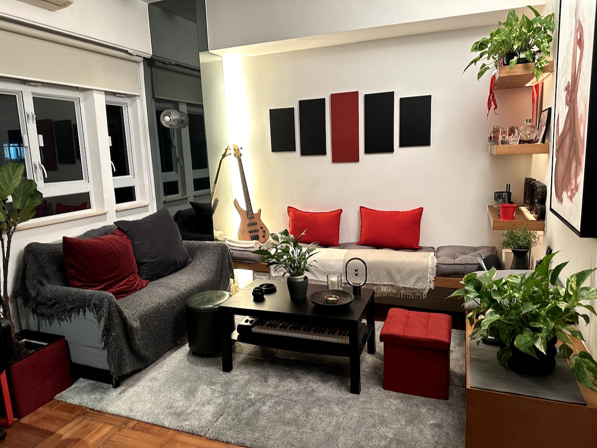 Bienvenue dans notre maison dynamique ! Notre appartement dispose d'une terrasse privée avec vue sur la ville, pour les rassemblements ou les barbecues. Commencez votre journée par une séance d'entraînement, suivie d'un café artisanal. Avec l'énergie de la ville à votre porte, l'exploration est un jeu d'enfant. Après votre aventure urbaine, retournez à la tranquillité. Faites cuire un steak sur votre gril, dînez en plein air sous la surveillance de notre guerrier en terre cuite. Ce havre de paix unique et spacieux est parfait pour les couples ou les voyageurs à la recherche de quelque chose de spécial à Hong Kong.