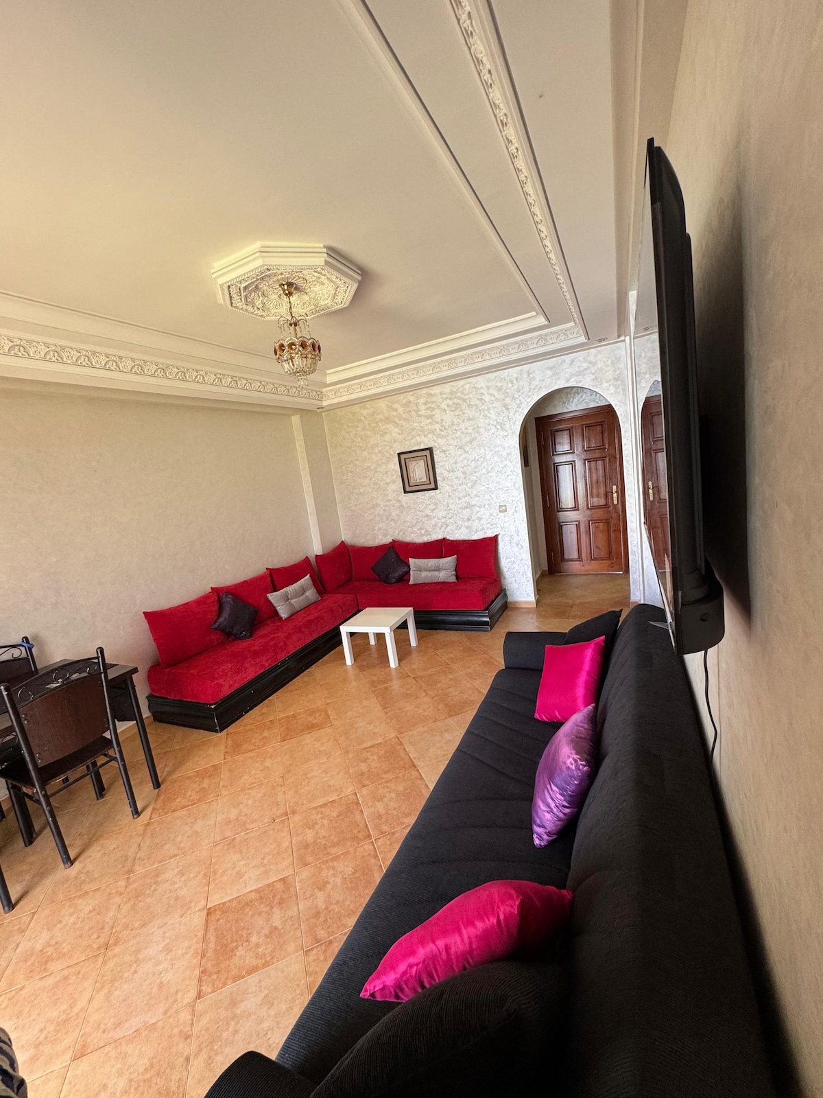 Joli appartement spacieux et lumineux. Lâappartement se trouve en plein centre-ville, câest pourquoi lâimmeuble est nommĂ© CĆur de Ville. Il comprend 2 chambres (1 lit double, 2 lits simples), un grand salon avec TV et balcon, une cuisine Ă©quipĂ©e (four, micro-ondes, machine Ă laverâŠ), wifi, salle de bain avec baignoire et toilettes sĂ©parĂ©es. Matelas supplĂ©mentaires possibles. Ă 3 min de la Place Espagnole et corniche . â ïž POUR LES COUPLES MAROCAINS, LâACTE DE MARIAGE EST OBLIGATOIRE.