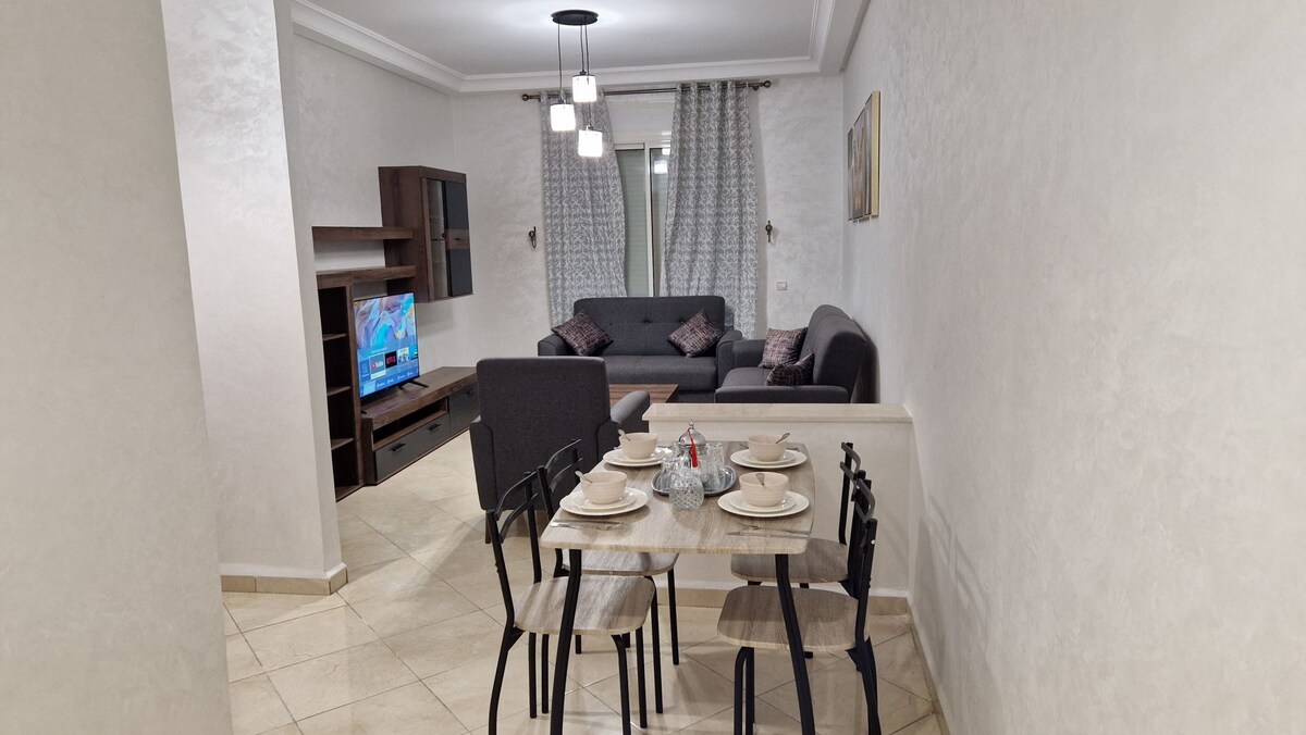 شقة واسعة ومجهزة بديكور مغربي عصري، تقع في قلب المدينة بالقرب من المحلات التجارية، المطاعم، والأسواق. تضم غرفتي نوم، حمام، مرحاض، غرفة معيشة كبيرة، ومطبخ مجهز بالكامل، مثالية للعائلات أو الأزواج الحاملين لشهادة زواج. توفر أجواء هادئة وفراشًا عالي الجودة لضمان الراحة. قواعد المنزل: الإيجار للعائلات أو الأزواج بشهادة زواج، - لا أمسيات وحفلات - لا ضوضاء بعد الساعة 10 مساءً. - احترام الحي والقواعد الداخلية للإقامة. ‼️ وفقًا للقانون المغربي، يُمنع تأجير الشقة للأزواج غير المتزوجين.