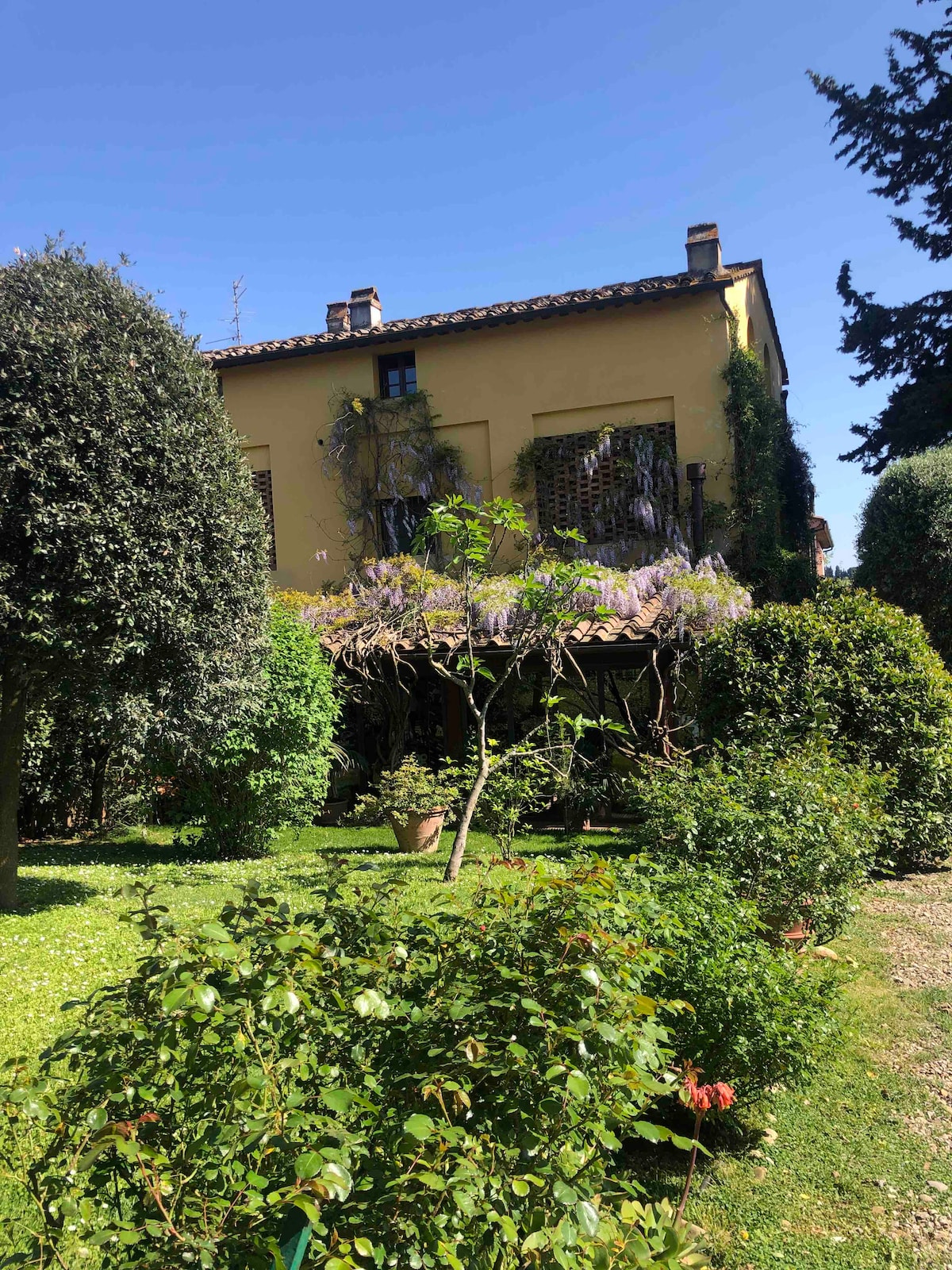 Belle vue sur la vallée, détente douce dans le jardin odorant sous un arbre très ancien dégustant un bon vin, puis pour visiter Florence, Pise, Sienne à seulement 30 km d'ici et châteaux médiévaux,petites églises, vignoble, de l'autre côté de la belle route du Chianti.....