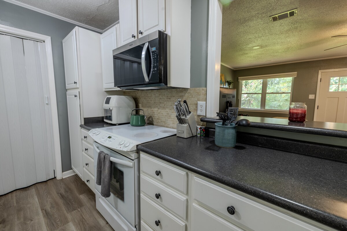 Si vous avez toujours voulu vivre dans une petite maison tout en pêchant de l'arrière-cour, venez séjourner ici ! La deuxième chambre est un magnifique loft dans cette retraite de 6 ans au bord du lac de 900 pieds carrés. Mignon Athènes est à seulement 5 miles, et le premier lundi de Canton est à 30 miles. Après une journée amusante de pêche, de kayak, de courses de SUP, de baignade dans le lac, de pédalo, de nourrissage des canards, de cornhole ou de lancer de frisbee, profitez d'un magnifique coucher de soleil à l'est du Texas avec votre boisson préférée, puis d'un feu avec des s'mores.