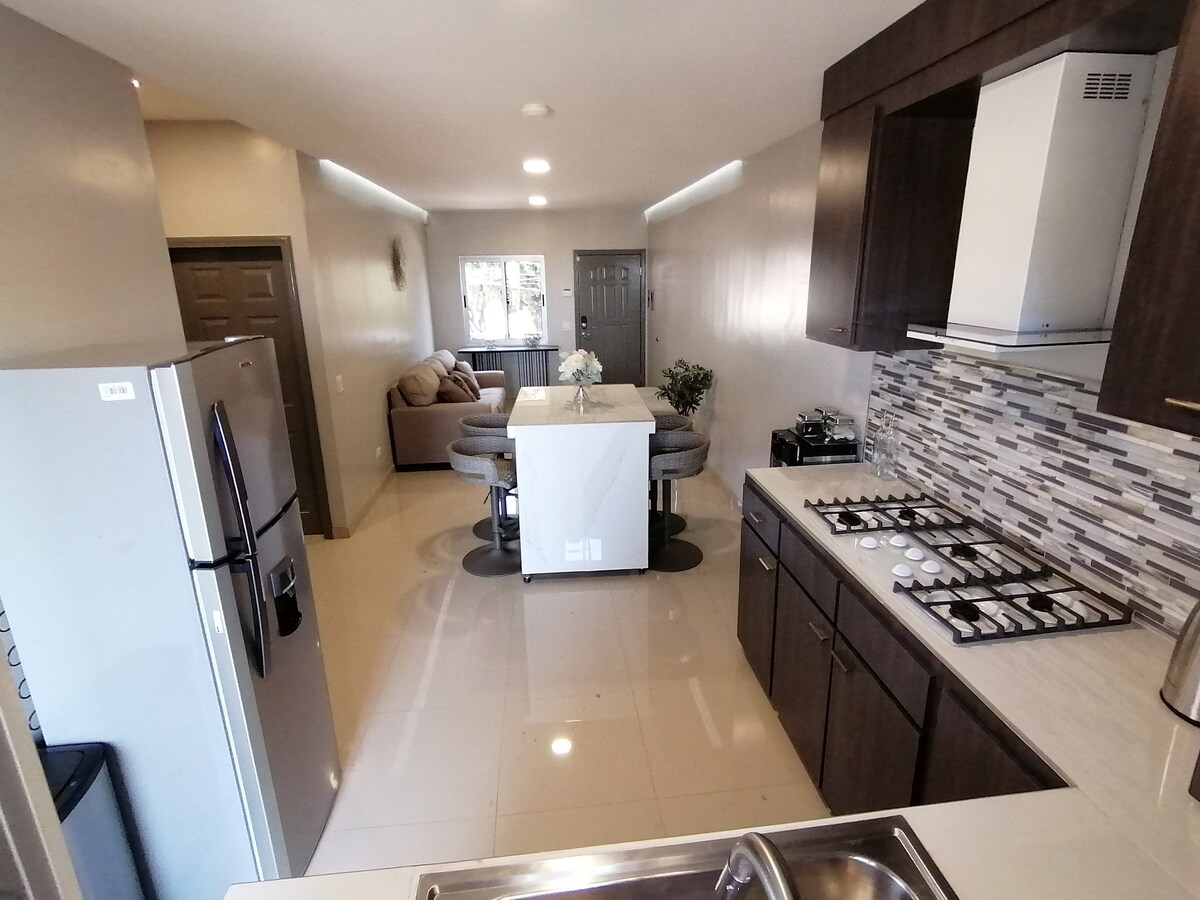 Découvrez la maison parfaite loin de chez vous ! Profitez du confort de ce tout nouvel appartement calme et sécurisé, doté de tous les équipements essentiels. Sortez sur le patio ou la terrasse et profitez de la buanderie. Situé au cœur de la ville, vous êtes à seulement 7 minutes en voiture du quartier touristique animé, avec un accès facile aux routes principales. De plus, vous êtes à seulement 30 minutes de la charmante Valle de Guadalupe. Votre escapade idéale vous attend ! **Pas de parking privé**