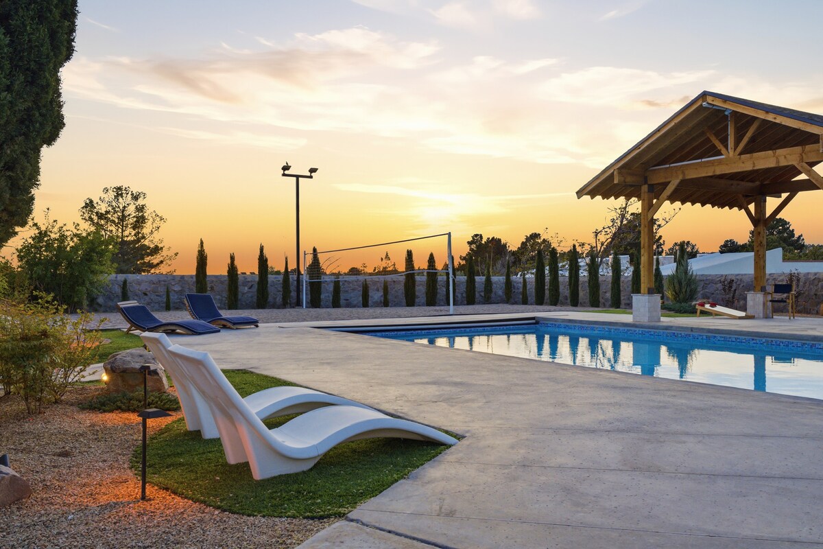 Relax with the whole family in this serene home with stunning mountain views. With one of the best views in all of Las Cruces, you'll love watching the sunset over the Organ mountains! This contemporary new build is over 2,800 square feet with plenty of space for your entire family. You will love spending time outside with corn hole, table tennis & a cozy night next to the fireplace. Conveniently find a public pool 6 mins from the home for the whole family to enjoy on those hot summer days.