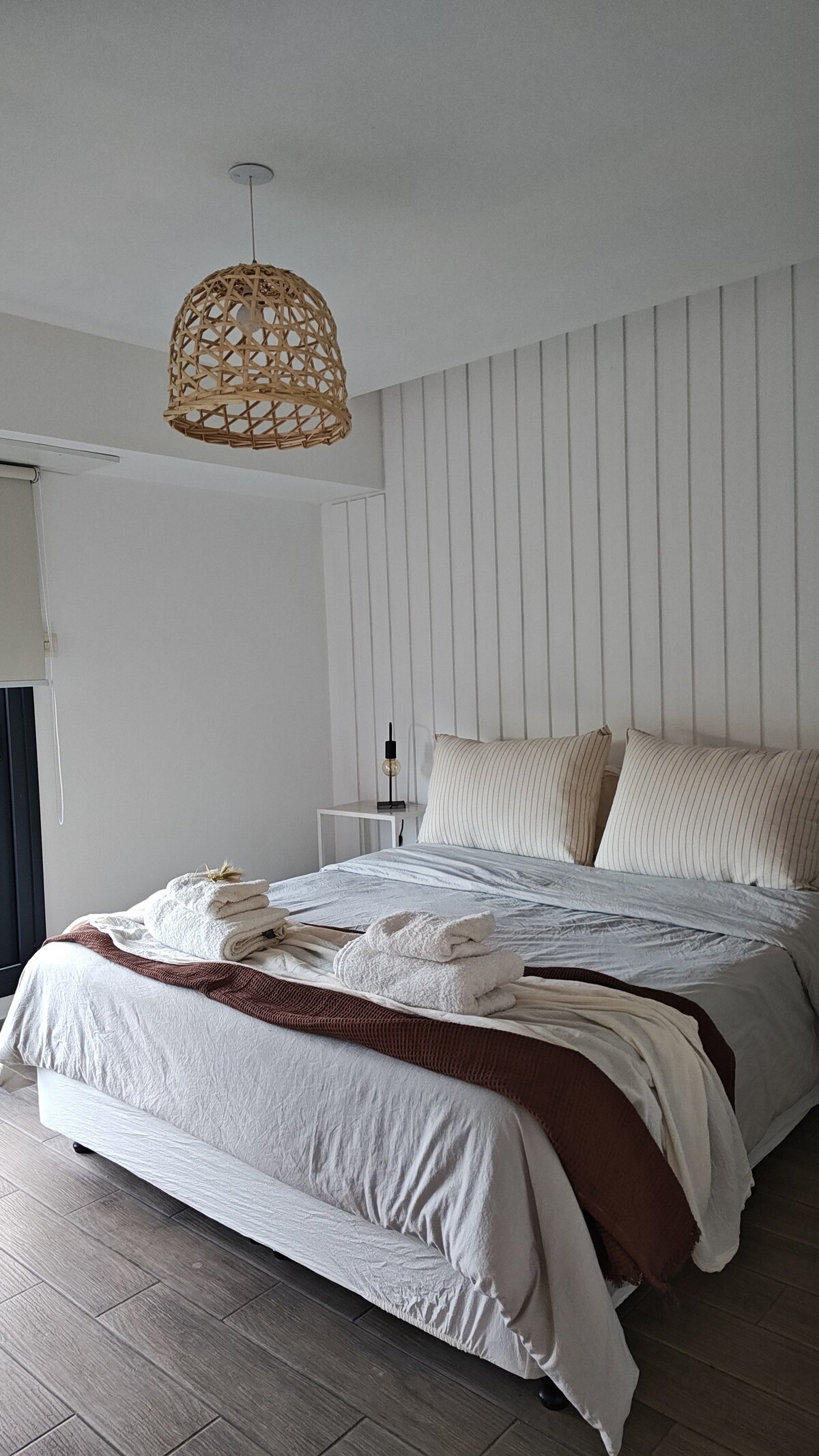 Belle maison de 2 chambres, à quelques mètres de l'océan, des plages et du parcours de golf de Quequen. Grande cour arrière où les enfants peuvent jouer, terrasse où profiter d'un barbecue en famille et entre amis, et un petit toit où profiter des boissons au coucher du soleil et de la vue sur l'océan. Au niveau principal, il y a le salon, avec une cuisine intégrée et une petite salle de bain. Au deuxième niveau, il y a la chambre principale avec un lit king size, une grande deuxième chambre avec deux lits simples et la salle de bains principale.