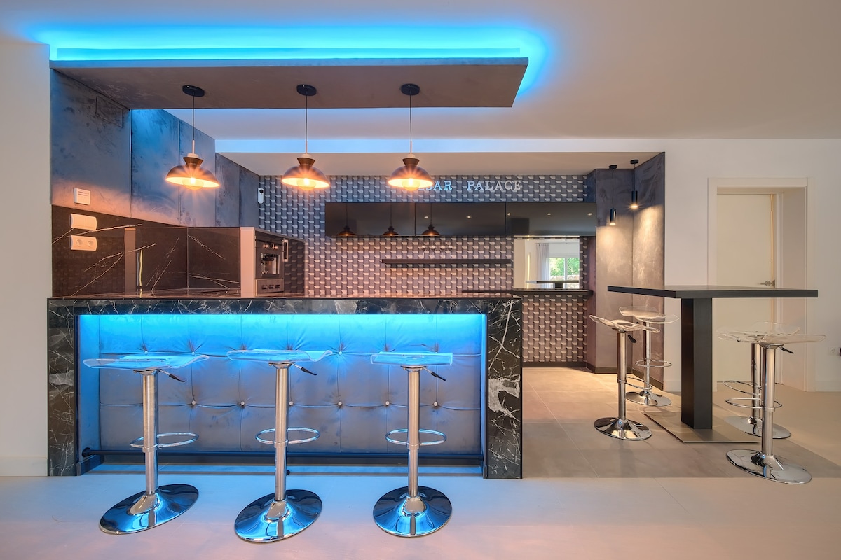 Fantastique villa familiale avec 6 chambres doubles, 4 salles de bains et 1 WC pour les invités. La villa est de haut niveau, et est très bien équipée, entre autres, des réseaux de fibre optique 500/500 mb, une télévision avec Chromecast. Climatisation/pompe à chaleur dans toutes les chambres, la salle de jeux et le salon. Superbe jardin avec plusieurs coins salon, trampoline et espace de balle avec but de football et panier de basket. Table de ping-pong extérieure et propre parc de fitness (entraînement de rue). ) Grande piscine d'eau salée.