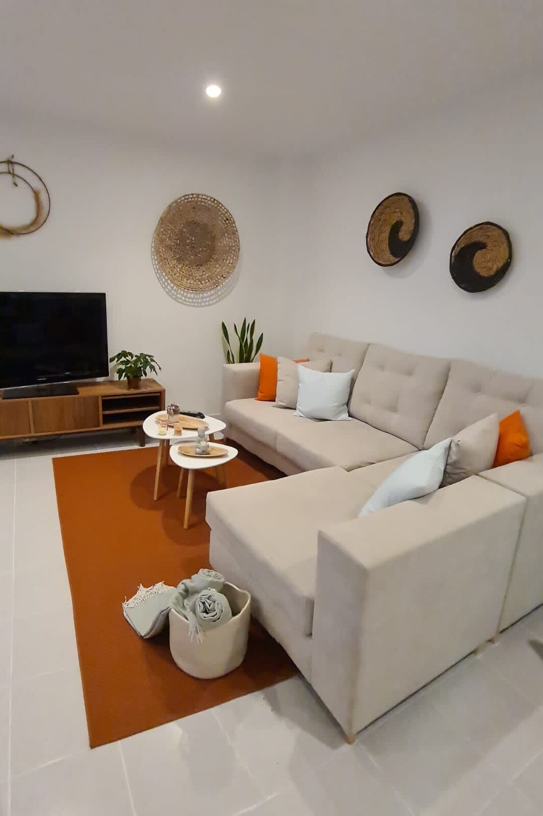Logement exclusif de 100 m2. Espace accueillant, confortable et impeccable avec un design d'intérieur très soigné, optimisant la fonctionnalité et l'esthétique à la fois dans le mobilier et dans les matériaux et l'éclairage. Il dispose de grandes fenêtres qui permettent l'entrée de beaucoup de lumière naturelle et des vues panoramiques sur la ferme. Elle est équipée de tout ce dont vous avez besoin pour six personnes. Elle est entourée d'un jardin d'environ 300 m2 délimité par une clôture en hêtres en pleine croissance et équipée d'une piscine avec eau de source.