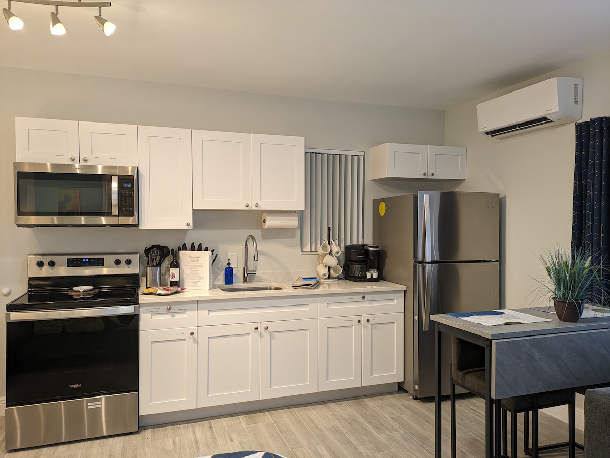 Entièrement équipé avec un lit Queen Size/une salle de bain et un canapé-lit, peut accueillir 4 personnes (de la même famille). Ce charmant appartement climatisé est situé dans un immeuble charmant, calme et bien entretenu sur l'intracoastal, à seulement un pâté de maisons de la plage, des boutiques et des restaurants de Fort Lauderdale. Wifi, télévision par câble et services de streaming et place de parking inclus, l'appartement est bien équipé avec un lave-linge et un sèche-linge et tout ce dont vous pourriez avoir besoin pour une escapade relaxante ! Désolé, pas de fêtes, pas de tabac et pas d'animaux de compagnie.