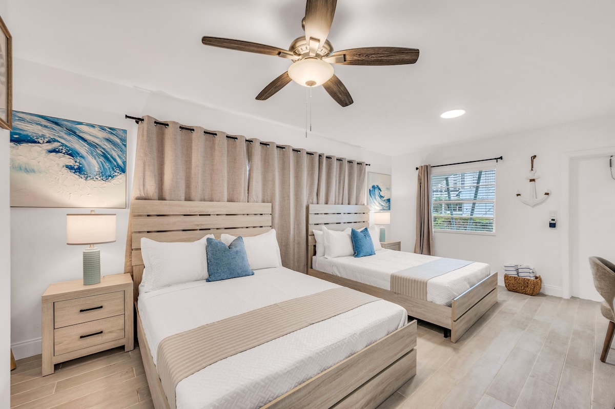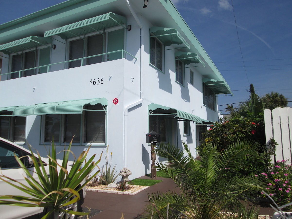 Ce charmant appartement est situé à distance de marche de Lauderdale-by-the-Seal plaza et de belles plages et a été récemment rénové avec une combinaison parfaite de couleurs pour que vous vous sentiez les bienvenus et à l'aise. Inclus : • Cafetière, double - goutte à goutte et dosettes • Grille-pain • Micro-ondes • Bouilloire électrique ; • Mini-réfrigérateur • Haut-parleur Bluetooth • Fer à repasser avec planche ; •Séchoir à cheveux Service gratuit : • Chaises de plage, parasol, serviettes et un chariot • WiFi jusqu'à 60 Mbps • Télévision par câble de niveau intermédiaire • Stationnement gratuit pour un véhicule