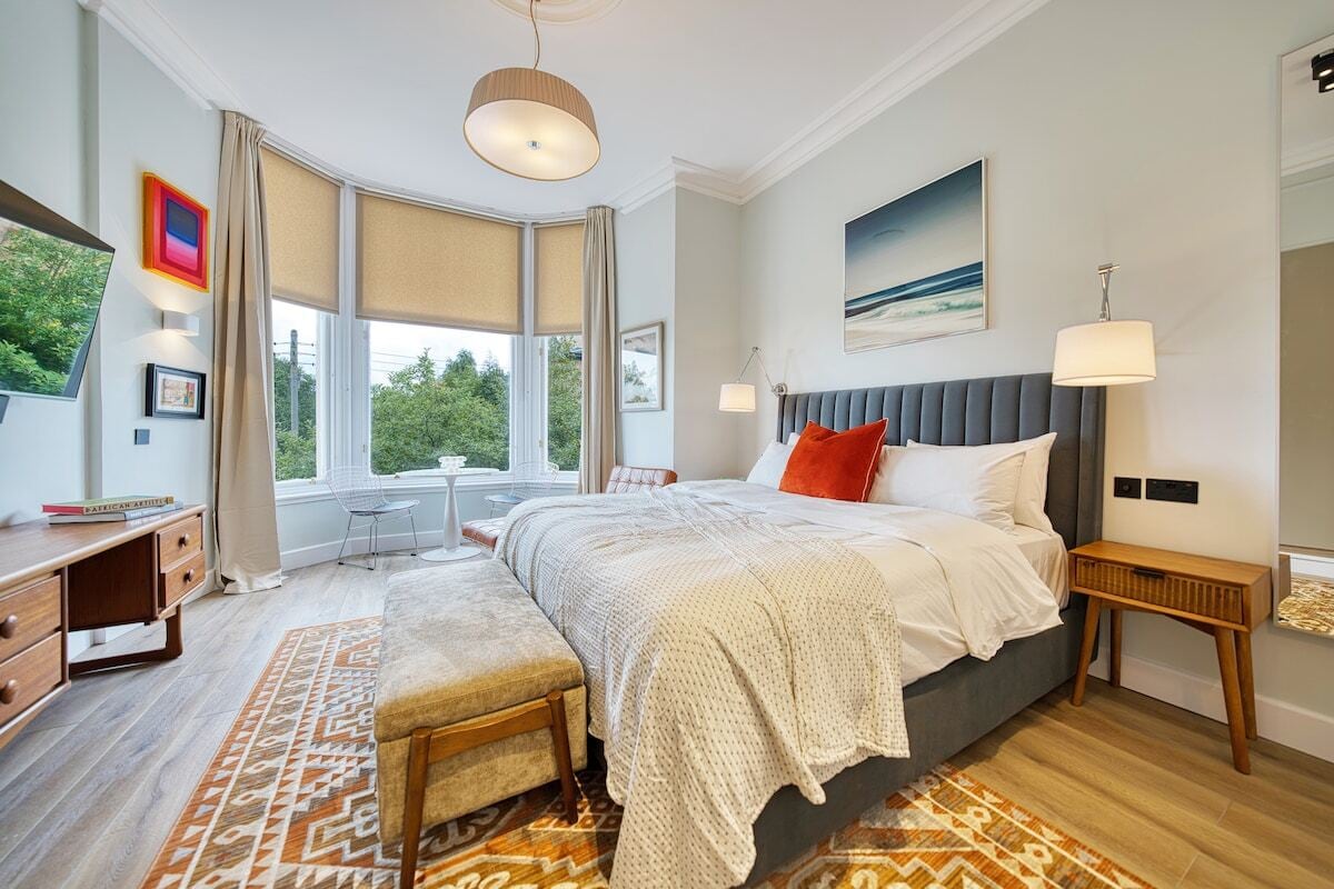 Des couleurs douces et des textures naturelles ornent chaque espace et élèvent cette maison pour la rendre à la fois confortable et accueillante. Détendez-vous sur le canapé moelleux et profitez de la télévision connectée après une journée passée à explorer la ville. Il y a un itinéraire autoguidé dans l'appartement, écrit par les Superhosts, une aide précieuse pour explorer Glasgow. Pourquoi réserver chez nous ? - L'emplacement ! - Appartement d'une chambre propre et récemment rénové. - Réductions sur les excursions d'une journée/visites des Highlands d'Écosse - Cuisine bien équipée.