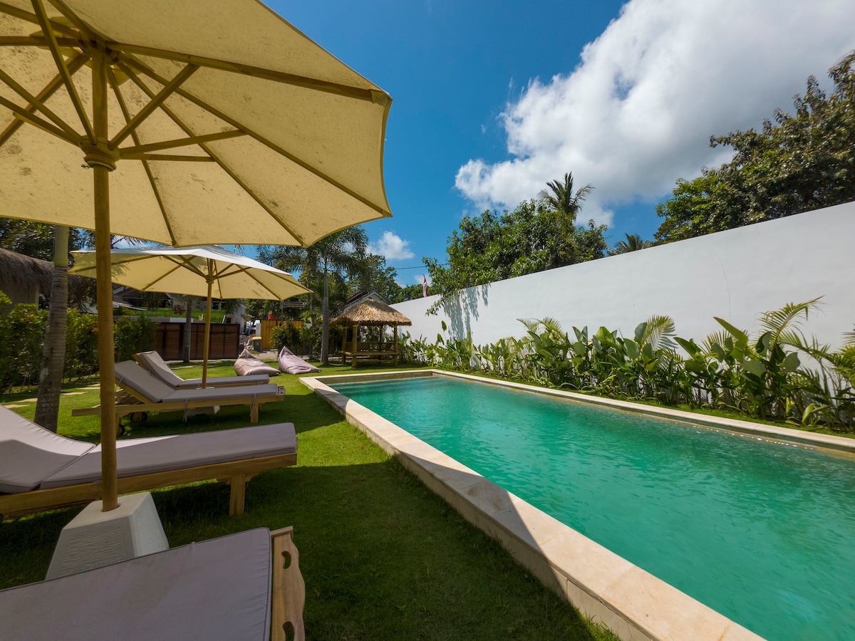 ISI ISI est une maison confortable de deux étages avec climatisation, piscine, cuisine, grande salle de bains et jardin luxuriant, construite avec des matériaux naturels et entourée de palmiers au bord d'une petite rivière. ISI ISI est pour ceux qui aiment entrer en contact avec la nature et la vie locale. La région est un village rural appelé Merendeng, à 15 minutes de la route principale, à 5 minutes en scooter. Il y a un parking privé. La chambre offre une vue panoramique. La grande terrasse est agréable pour se détendre, faire du yoga ou se prélasser dans le hamac.